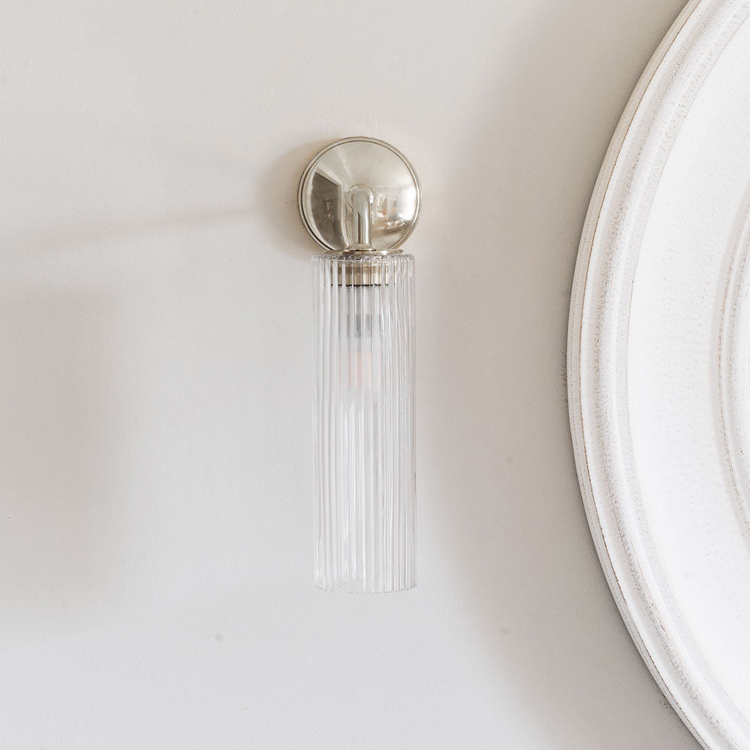 Skorter | Claremont Small Wall Lamp Ribbed Glass - Polished Nickel
