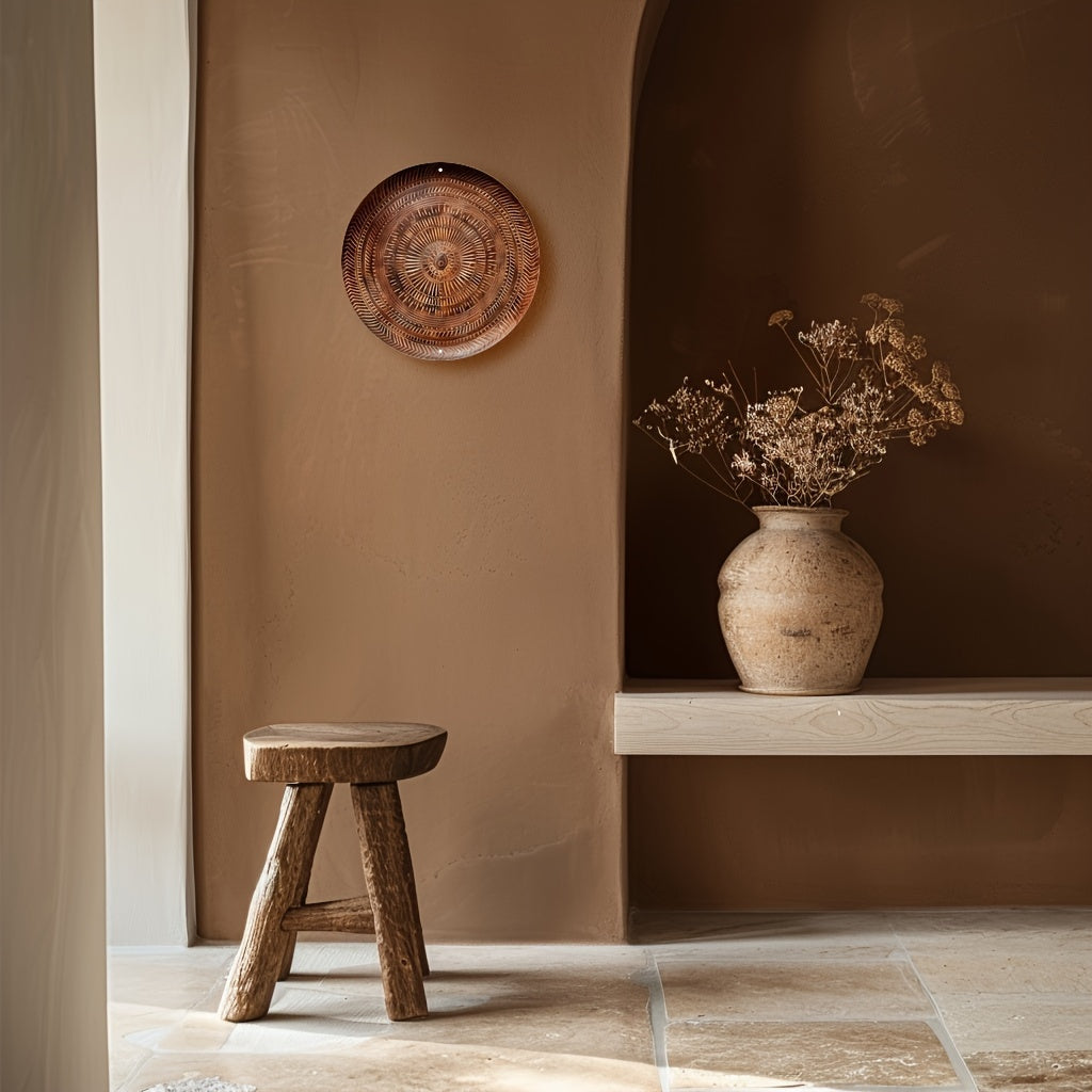 CoolamonArt introduces a distinctive, round wall art piece crafted from aluminum, taking cues from traditional Coolamon designs. This striking piece is a fantastic addition to offices, events, and any setting that seeks to exude sophistication and cultural richness. Its lightweight aluminum construction allows for easy hanging, guaranteeing it will grace any wall with charm.
