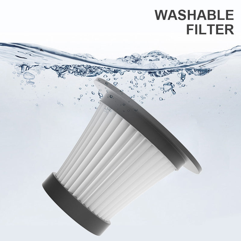 A HEPA filter = improved air quality after cleaning: Effortlessly eliminate dust, pet hair, crumbs, and allergens with our vacuum, which comes with a washable HEPA filter and a 600ML dust bin. HEPA filters are known for being highly effective, commonly found in larger vacuum models, effectively reducing the risk of particles being released back into the air during use, a notable feature of this otherwise compact vacuum. The filter can be washed and reused several times.