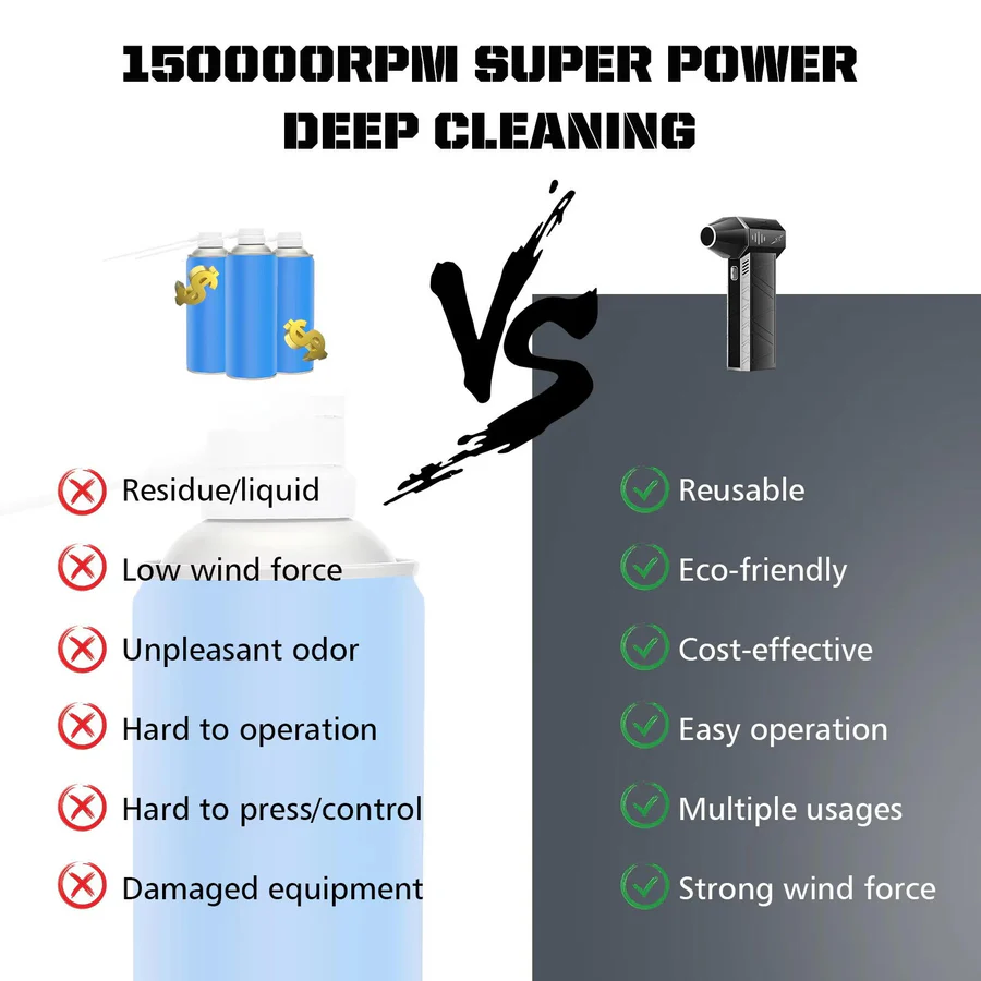 Effortlessly clear away dust and debris from your devices and hard-to-access spots without resorting to disposable air cans with this cordless jet blower fan. Designed for superb air blasting efficiency, this portable tool effectively removes dirt, debris, and dust from delicate equipment thanks to its robust airflow and the convenience of being rechargeable.
