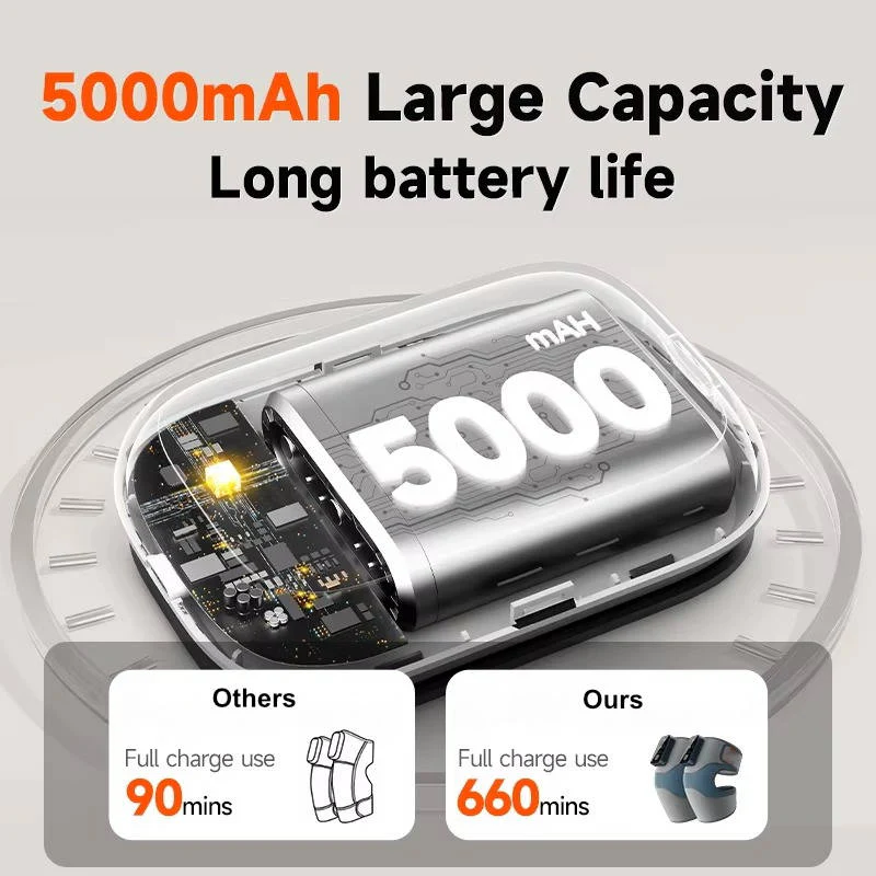 Powered by a 5000mAh rechargeable battery, this knee massager provides up to ten sessions on a single charge. The battery is built to endure approximately 2000 charging cycles, guaranteeing reliable performance and prolonged usability.
