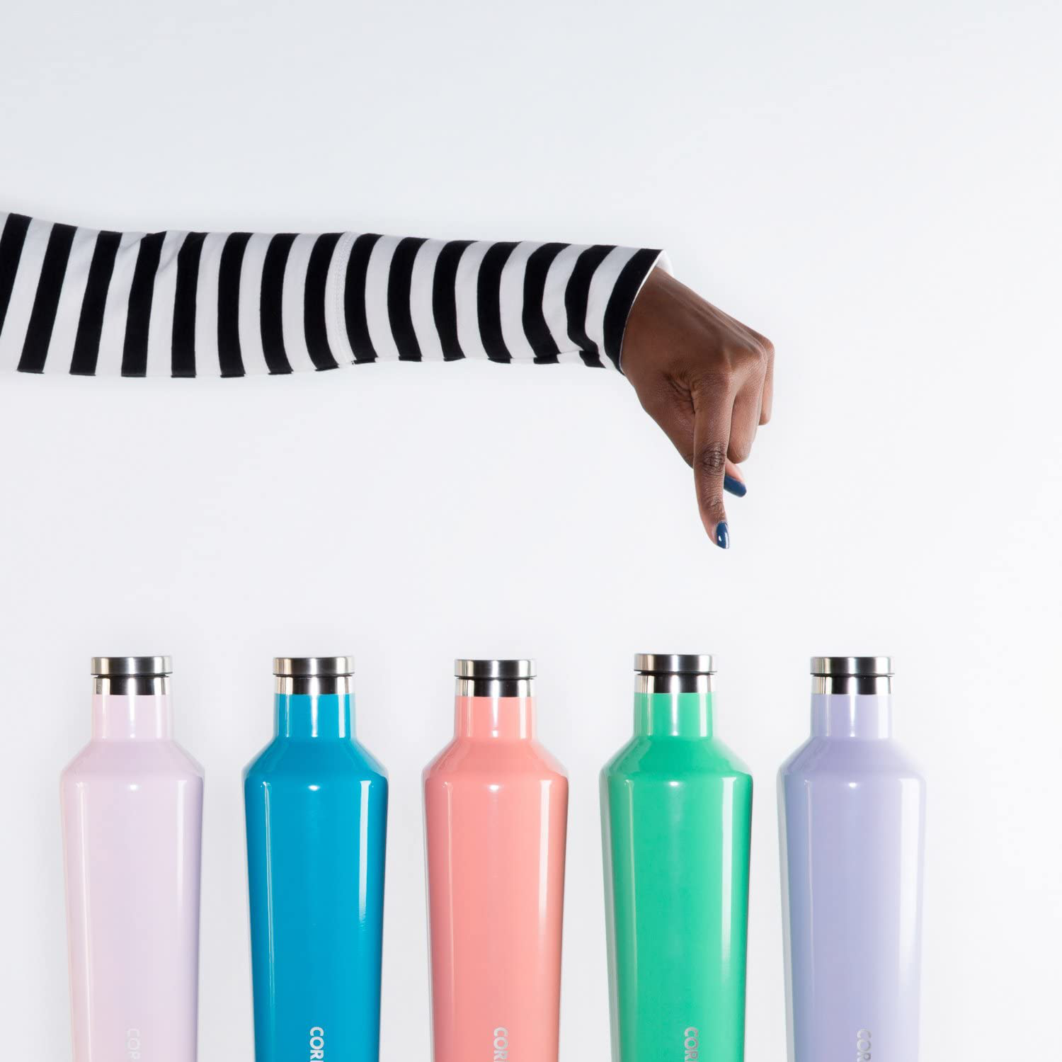 The eye-catching and fashionable Corkcicle Canteen. This sleek, BPA-free drink container is available in a variety of sizes and stylish colors. It maintains the temperature of your drinks, keeping them cold for 25 hours or hot for 12. Options include a 25oz that can accommodate a full bottle of wine and our extra-large 60oz—perfect for sharing sangria, margaritas, and other drinks.