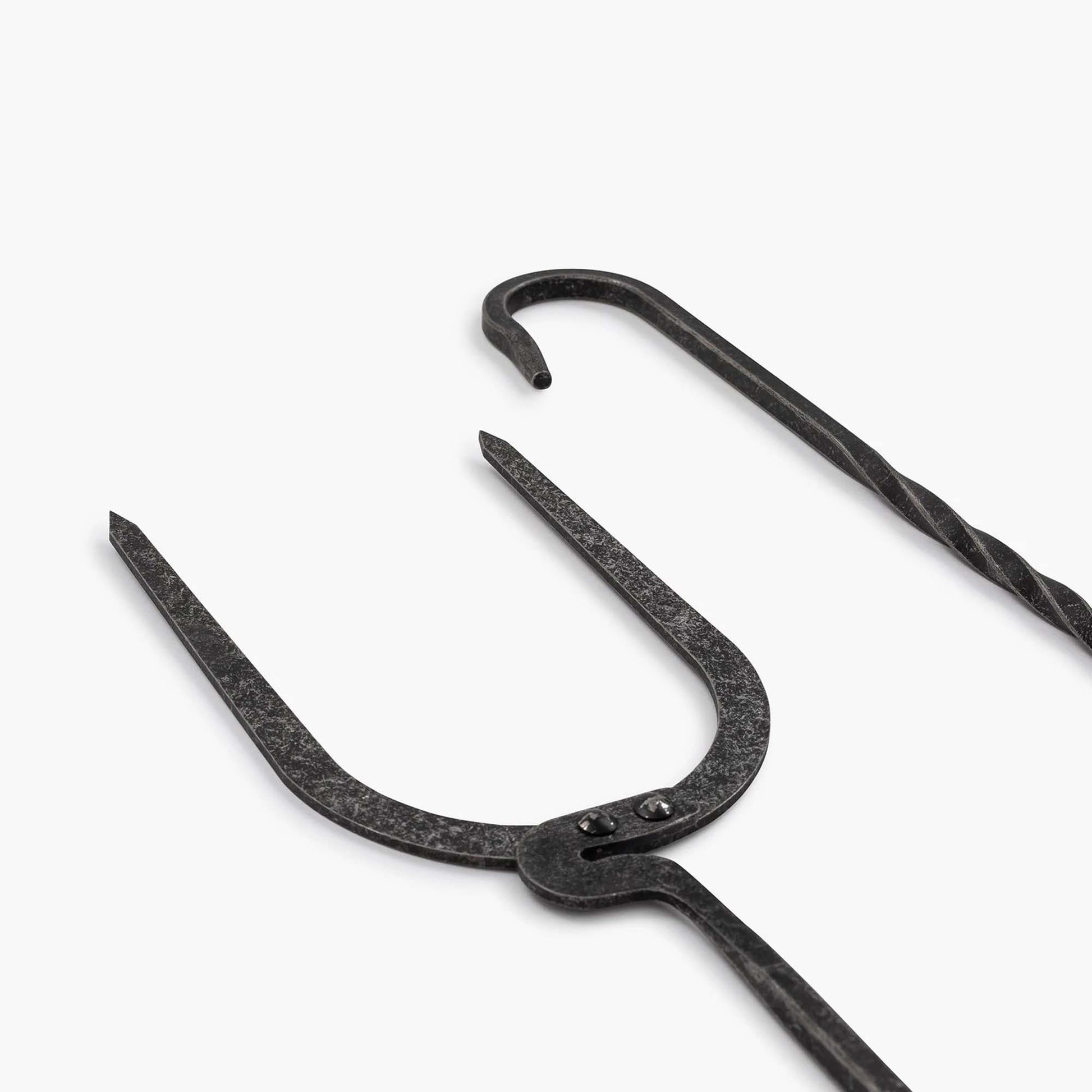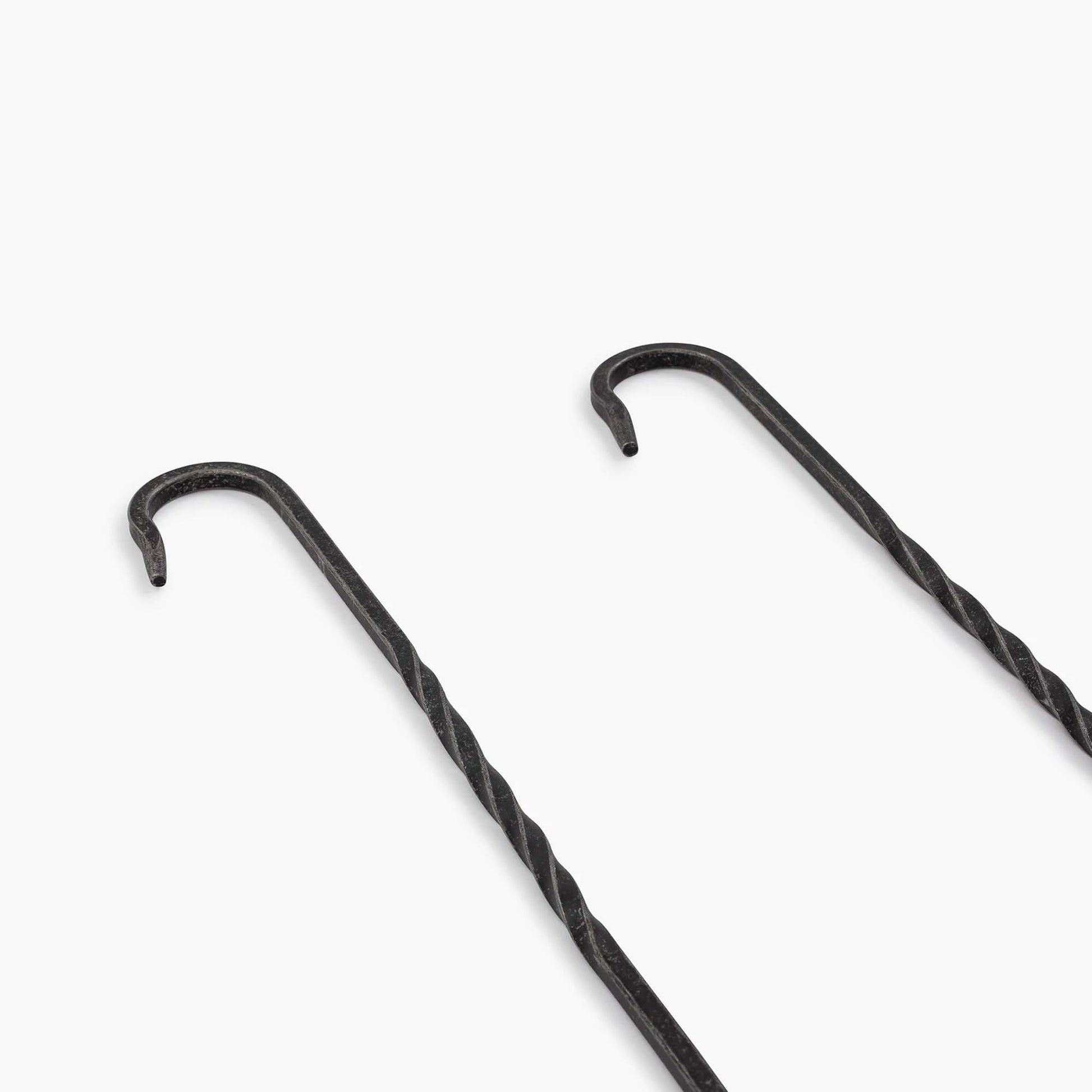 Take a moment, find yourself a spot, and relish the charm of an extended dining experience by the fire. Crafted by hand and finished with a stunning antique black coating, these grilling tools are essential for any camping trip. The well-designed hook at the end makes it easy to hang them at the campsite or store them away when they're not in use. The increased length provides both comfort and safety while working around flames and hot coals.