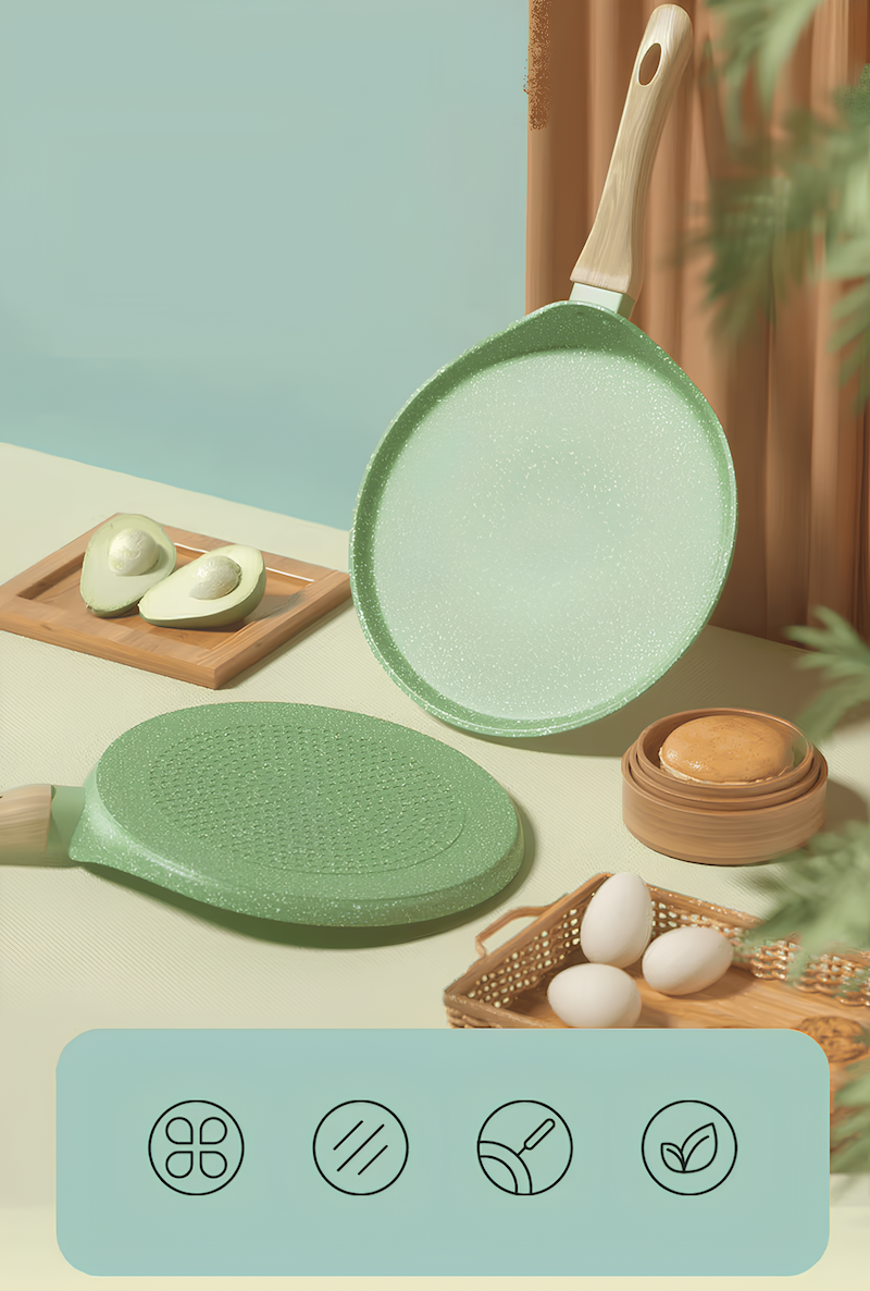 The cleverly designed handle features a handy hole for easy hanging of your pancake pan. Versatile, it works with all types of cooktops, including induction, for a cooking experience without limits.