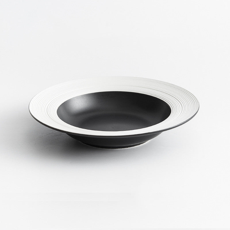 Transform every meal into something special with this black and white design Skorter hollow, whether it's for an intimate dinner for two, a cozy family lunch, or an evening gathering with friends, this Skorter is the perfect addition for all occasions. Its expansive surface allows ample room to elegantly present your culinary creations. Merging aesthetics and functionality, the Skorter Diske is an essential accessory in your dinnerware.
