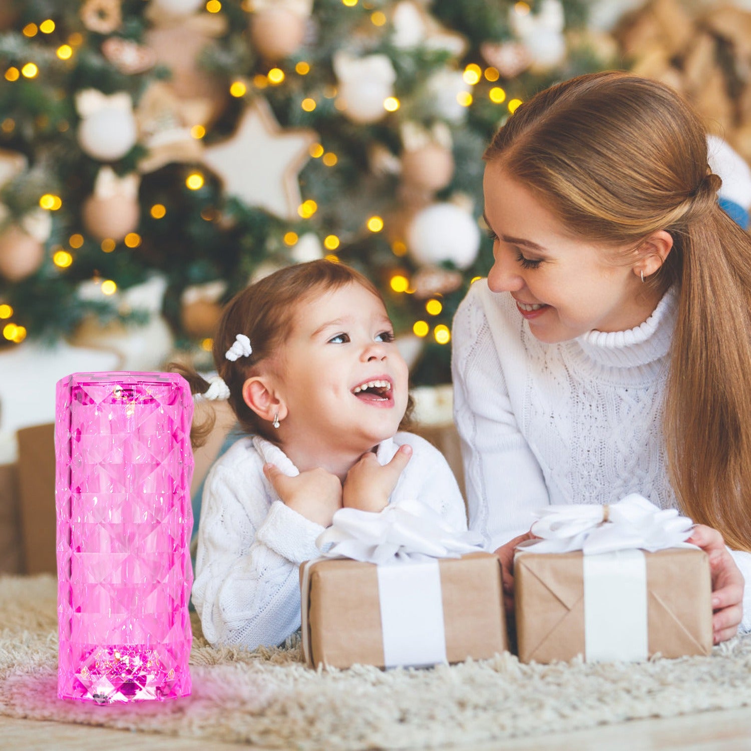 Expertly designed and carefully crafted, this lamp creates captivating light and shadows in lovely shades of rose. It redefines the ambiance around the diamond, immersing the environment in an endless sea of romantic light. Easily choose from 6 brightness levels using the remote control from nearly 10 feet away. With 16 enchanting colors, such as warm yellow, amber, purple-red, turquoise, blue, and others, it enhances your space exquisitely. The touch-sensitive switch offers a personal and user-friendly experience, while the lighting remains gentle, calming, and natural, safeguarding your eyes. It includes a USB charging cable, reaches full charge in 3 hours, and can illuminate for 10 hours. When not in use, the night lamp serves as a stylish decorative item that integrates effortlessly into your room. Its elegant crystal-like design allows it to be placed anywhere in your home during the day without clashing. At night, it emits a lively and romantic glow.