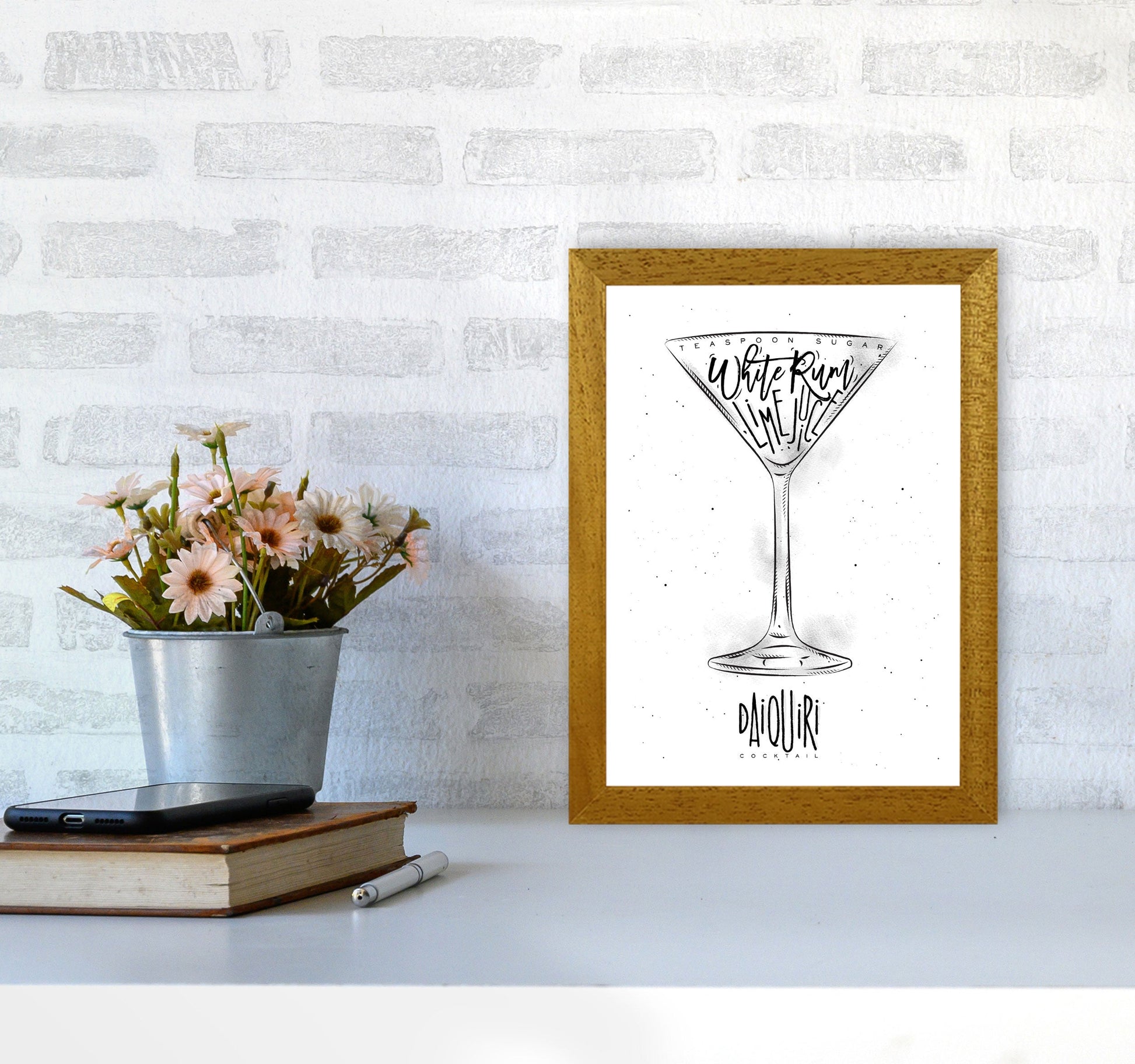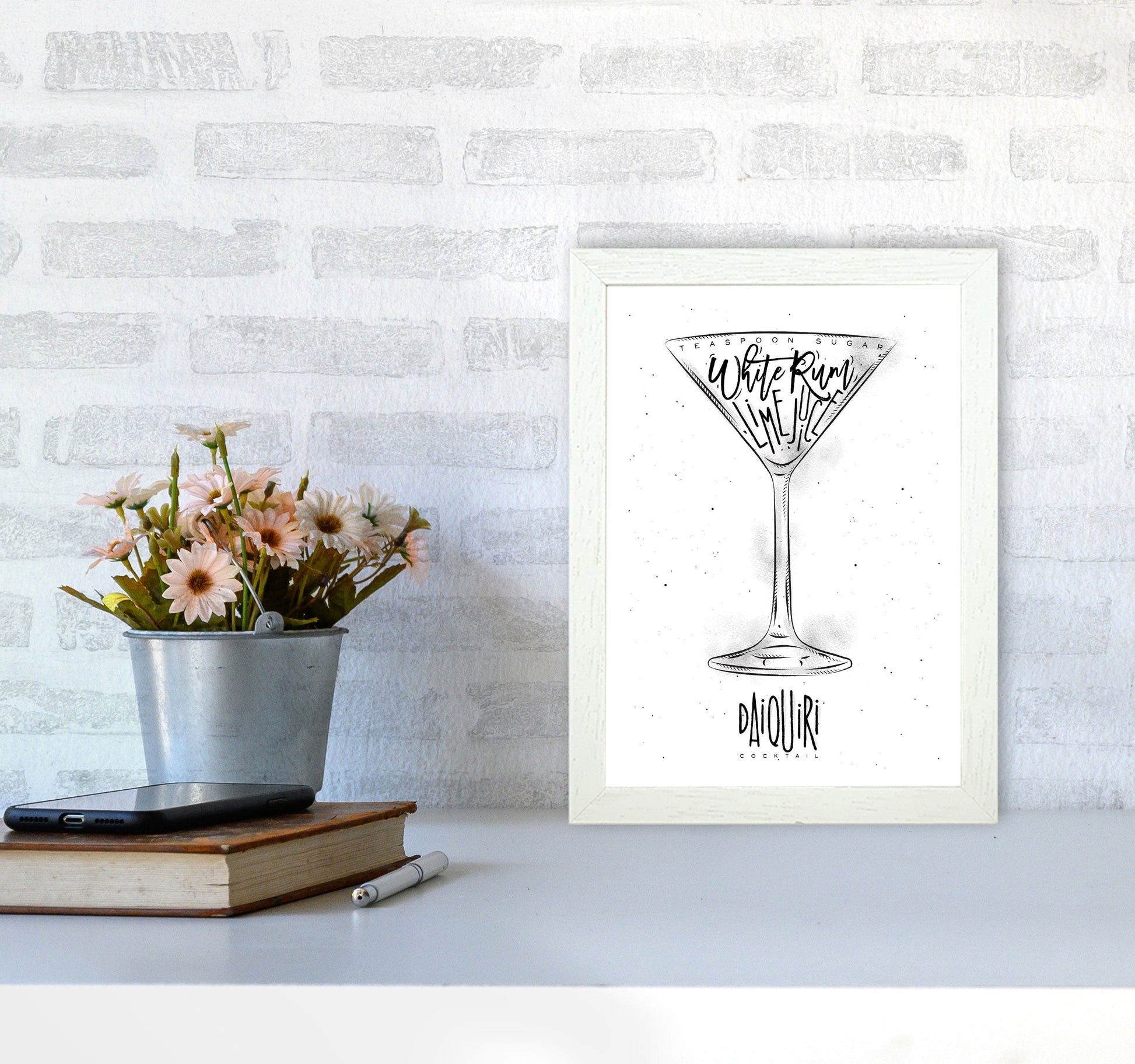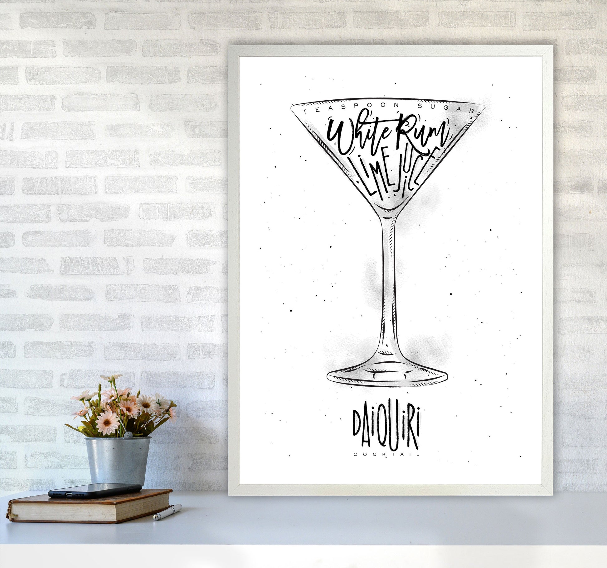 Original Giclée art print of the Daiquiri Cocktail. Available as a framed print, unframed print, or vibrant canvas art. This artwork is based on an original piece by Pixy Paper ©