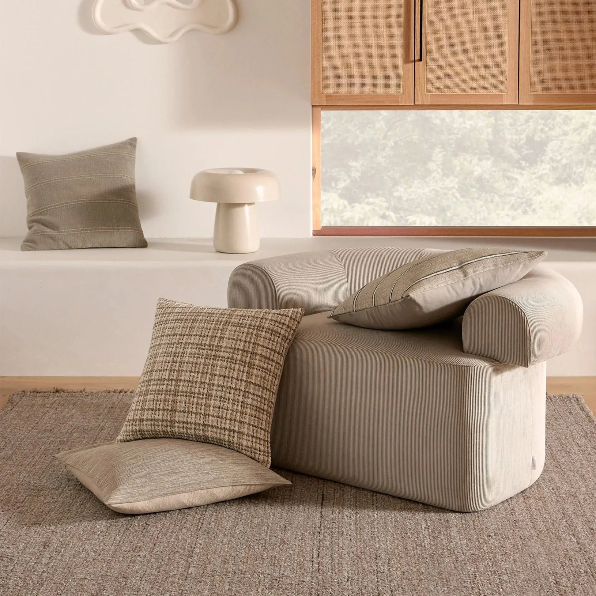 A modern, minimalist design with a woven texture that is gentle against the skin while also being resilient. This enduring style delivers aesthetic charm. Dania features a grounded, natural color scheme, allowing it to fit seamlessly into any environment. The Oyster shade is trendy, offering a cozy, two-tone color with metallic highlights. Inspired by the raw elements of Australia's dry terrains, the soft clay hues and sandstone variations imbue Dania with the spirit of natural settings within your home.