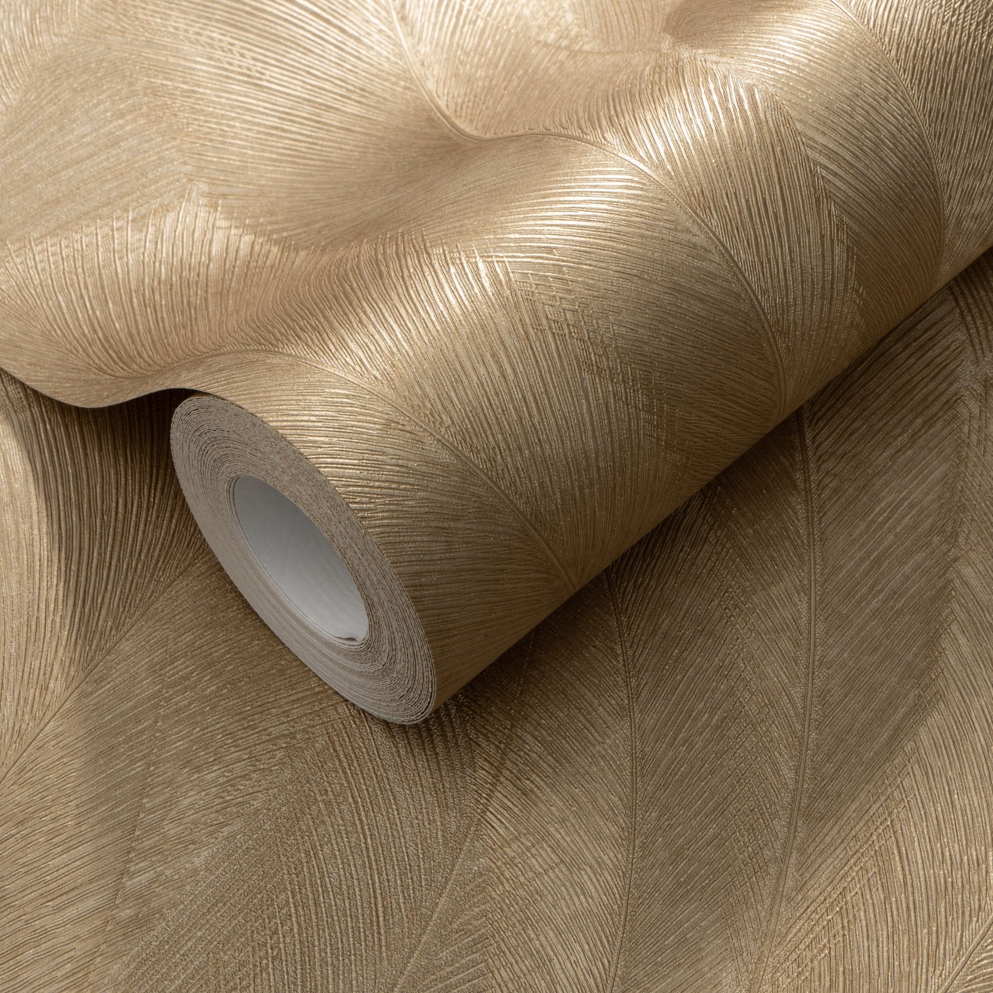 Darcys Golden Feathers metallic patterned wallpaper introduces elegance and depth to your walls.
