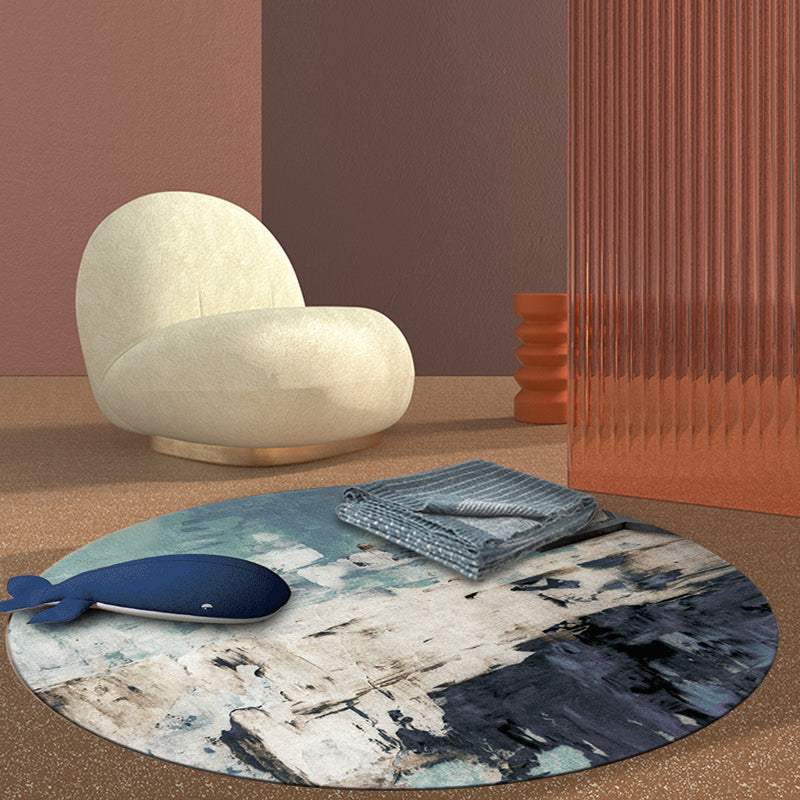 Skorter | Dark Industrial Area Rug Synthetic Abstract Oil Painting Print Rug Stain Resistant Carpet for Home Decor