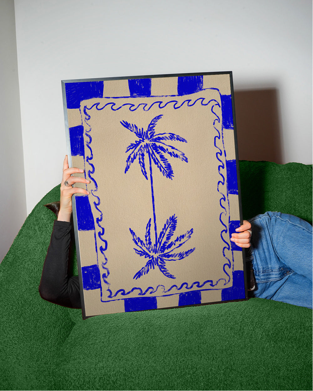 This artwork is part of a trio created by artist Shatha Dafai, showcasing different hues of blue and designed in a vertical format. Illustrated Posters complement both minimalist and abstract designs seamlessly. Revitalize your living space with an engaging and refreshing appeal.
