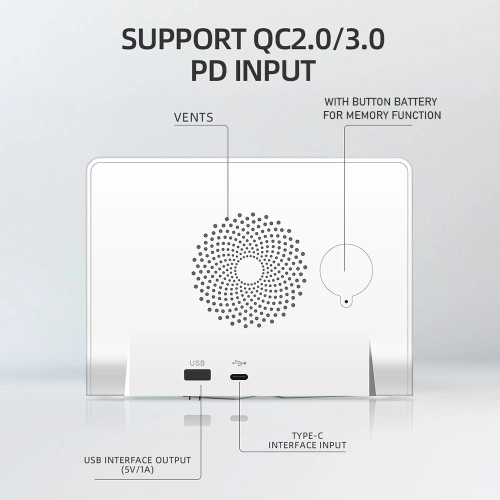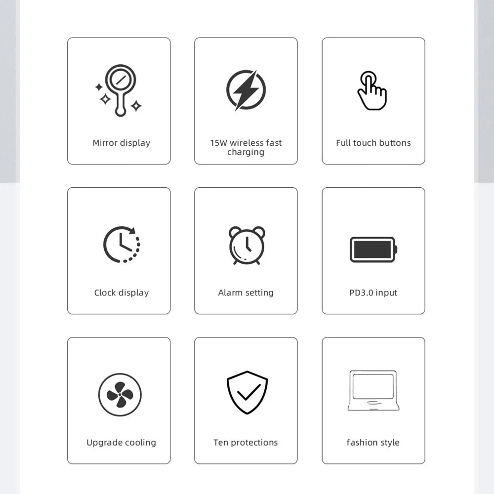 Multipurpose Digital Mirror Clock with 15W Wireless Charging Capability, featuring a Spacious Dimmable Display and Snooze Feature, plus USB Output, suitable for Bedrooms, Living Areas, and Workspaces