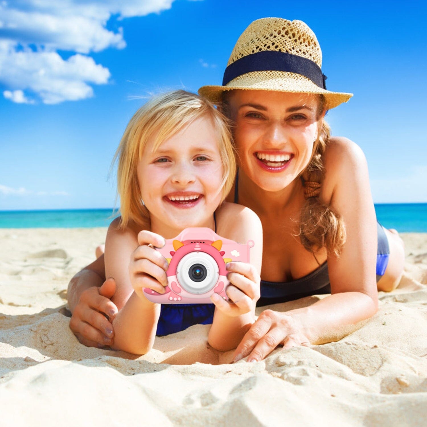 This children's camera features a dual lens setup, enabling your little ones to take selfies and capture delightful moments wherever they are. It includes a charming dinosaur-themed case that is sure to delight. With the capability of taking 48MP ultra-clear images and recording videos in 1080P HD, the camera also offers 6 fun photo filter frames, an 8X digital zoom, time-lapse mode, 5 educational games, a music player, and accommodates a MMC memory card of up to 256G. It's both multifunctional and entertaining! The camera is USB rechargeable for convenience. The package additionally comes with a lanyard, a 32GB MMC card, a card reader, and a reset pin. It's a fabulous gift that kids aged 6 and above will adore!