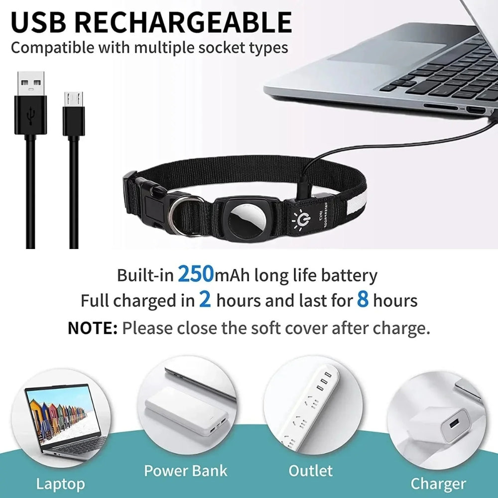 Ensure your beloved pet's safety while keeping them fashionable with the Quick Release Dog Collar featuring an LED and AirTag Holder. Ideal for both early morning jogs and evening strolls, this cutting-edge collar integrates visibility, protection, and compatibility with Apple AirTag technology.