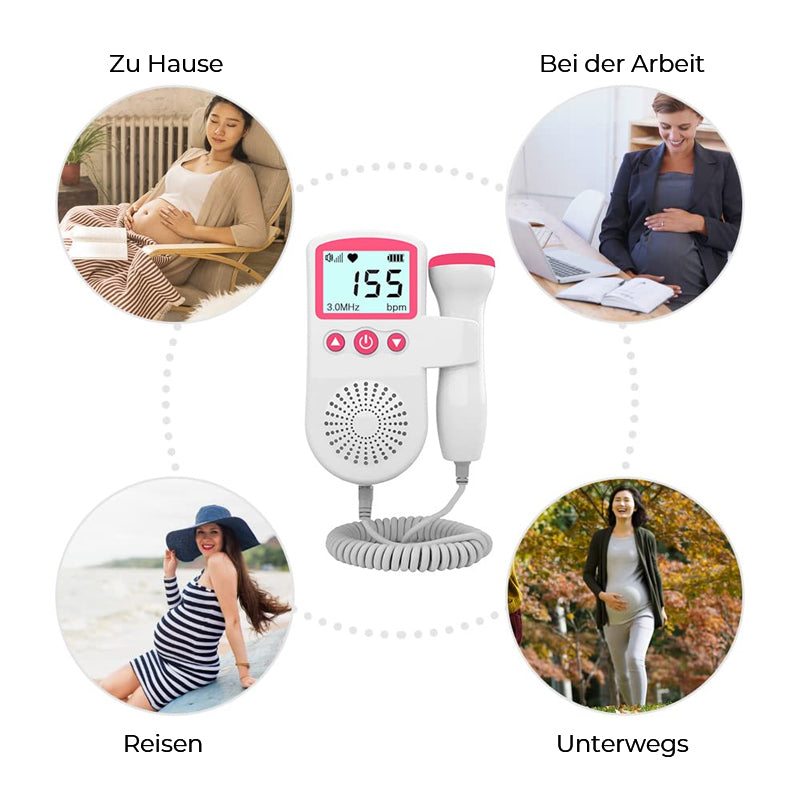 With our prenatal Doppler, you can listen to your baby's heartbeat whenever and wherever you like. We help you to savor the "most wonderful time in a woman's life" and alleviate your worries about your baby's wellbeing.