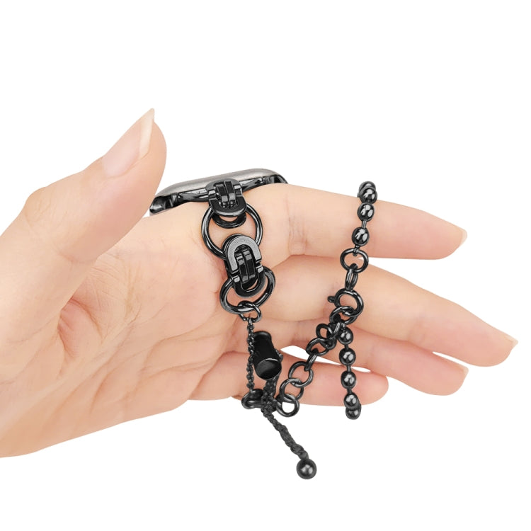 Skorter | Double chain 2-pearls stainless steel watch band for Apple Watch Series 9&8&7 41mm / SE 3&SE 2&6&SE&5&4 40mm / 3&2&1 38mm (Black)