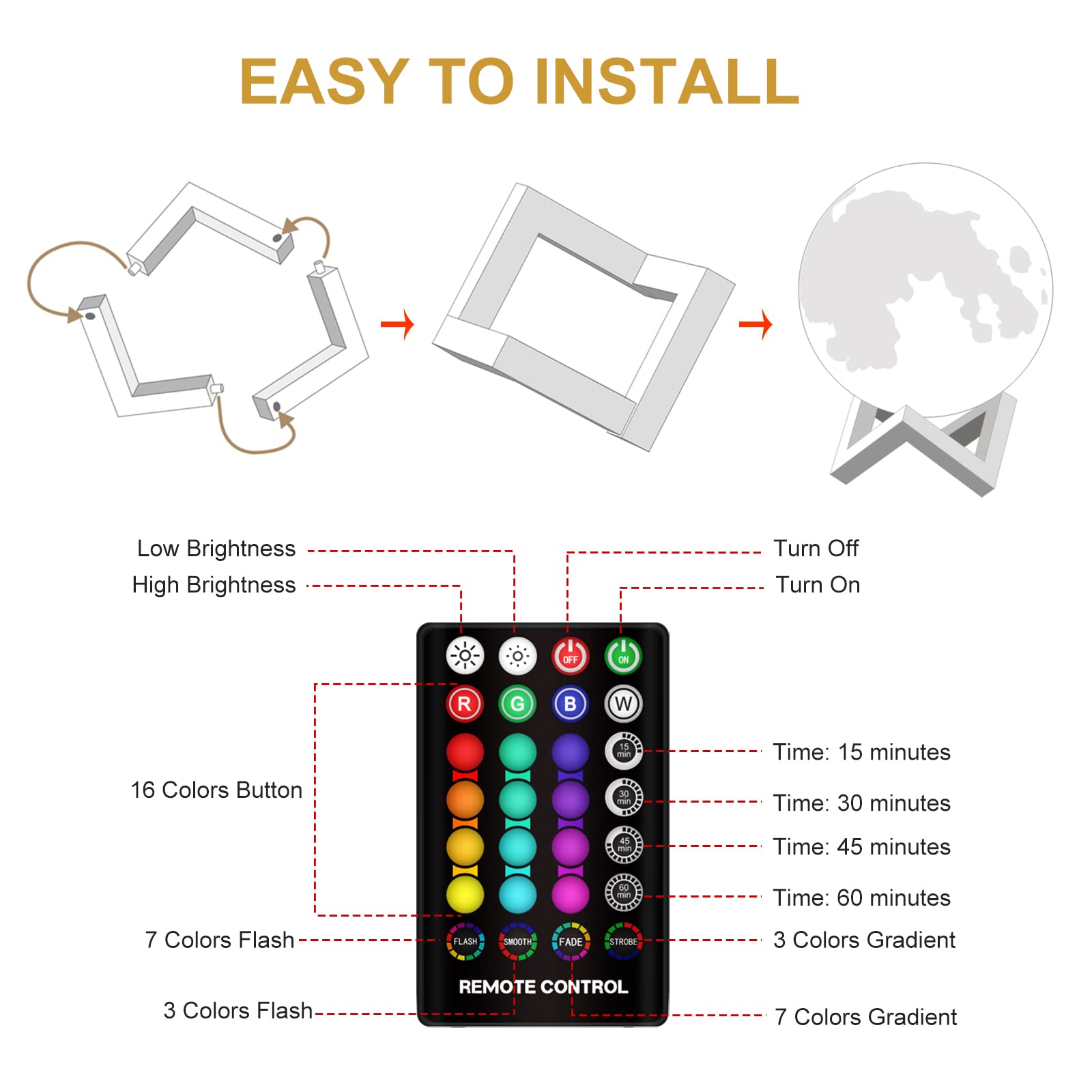 - **Easy Control Options**: Easily adjust the color and brightness of the moon lamp using the included remote control, which works up to 30 feet away, or use the handy touch control for quick access to your desired settings.