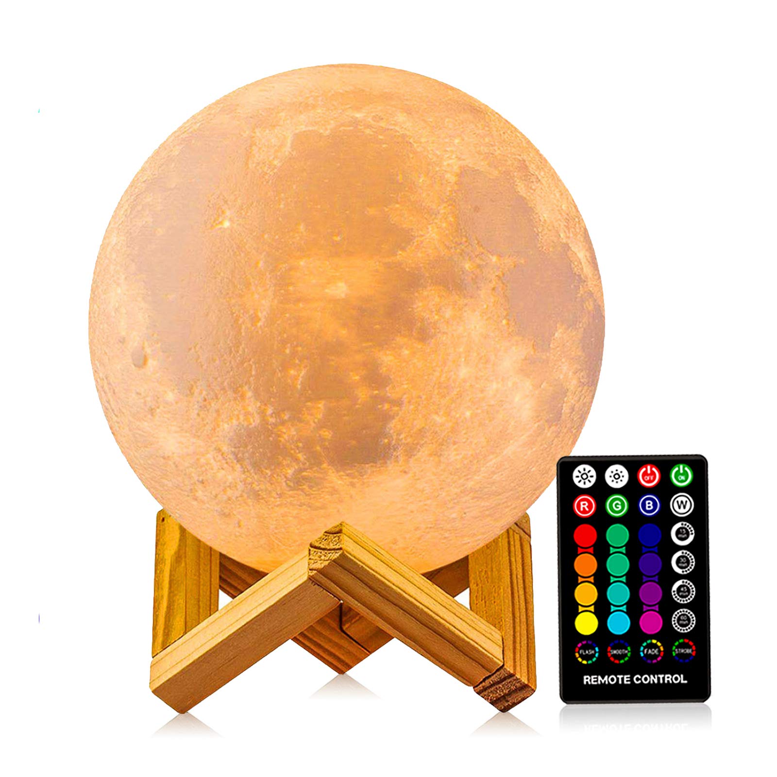 Skorter | Dtoetkd 3D Moon Lamp 6 Inches, 16 Colors, Touch Control, USB Rechargeable - Perfect Gift For Children