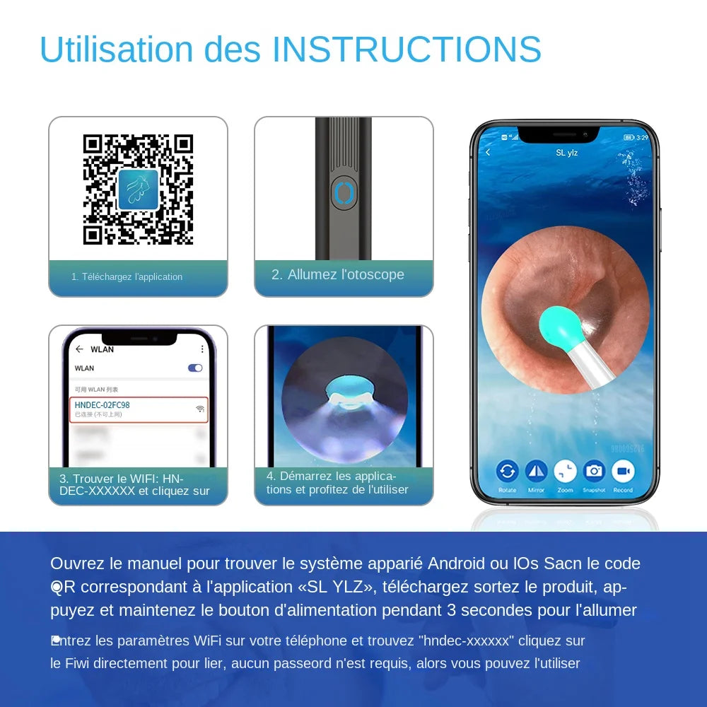 We are excited to present the Otoscope NE3 Wireless Smart Visual Ear Cleaner, an innovative tool specifically crafted for the efficient extraction of earwax, equipped with a 1080P endoscope camera kit that connects seamlessly to iPhone, iPad, and Android devices. The NE3 builds upon the success of its earlier model, now featuring significant upgrades and complying with FCC, RoHS, and CE certification standards. Our dedication to safety is highlighted by the use of non-toxic accessories, making it ideal for people with oily ears and providing a safe alternative for a variety of uses.