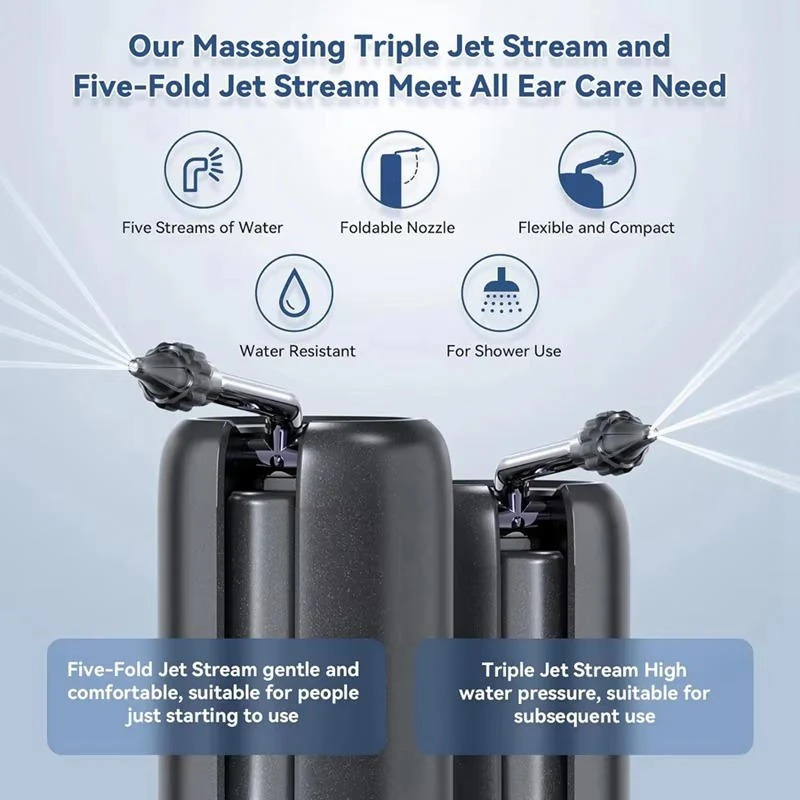 Whether you're preparing for your day or enjoying a relaxing shower, this waterproof ear washing device provides you with simple control. Select from four intensity settings to find the perfect flow for you, ranging from a mild rinse to a deep clean. Five targeted water streams cooperate to effectively eliminate buildup without any discomfort.