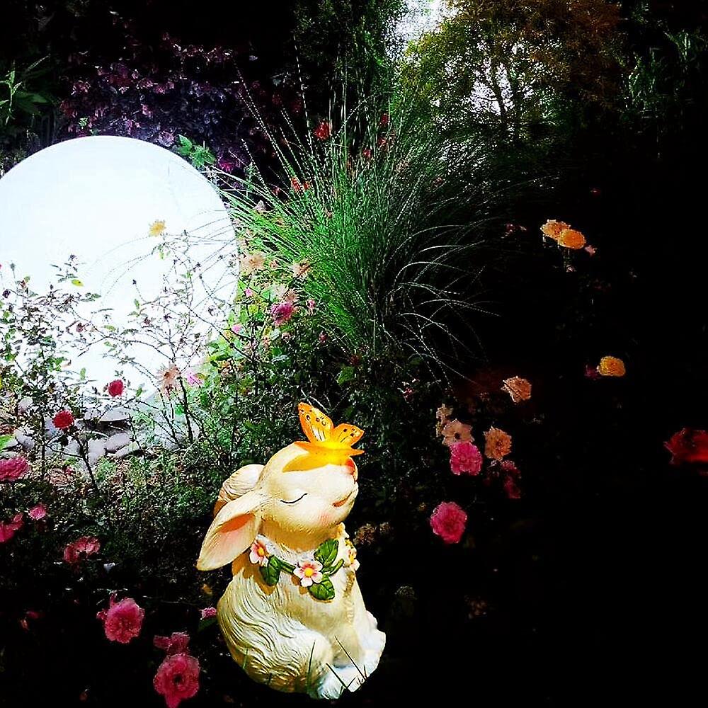 🌞🐇 SOLAR-powered with automatic on/off capability: These garden bunny sculptures draw energy exclusively from sunlight and do not need any external power. Thanks to the integrated sensor, the light turns on automatically in the dark and shuts off during the day. Artistically positioned: butterfly.