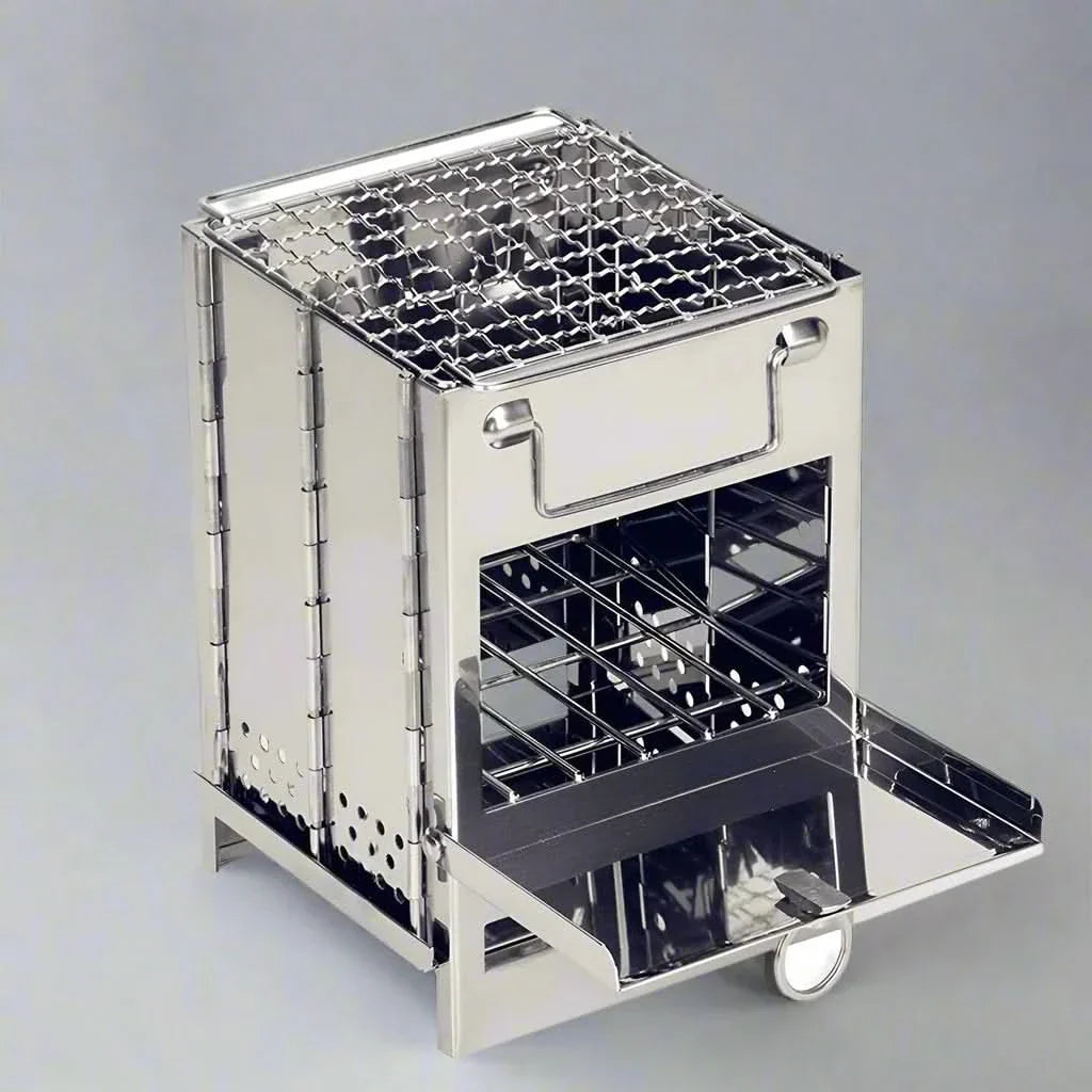 The EcoCamp Folding Wood Stove is an ideal partner for outdoor adventures, camping trips, or enjoyable grilling evenings in your garden. Made from stainless steel, it is durable, portable, and easy to transport. Its collapsible form and efficient combustion system offer practicality and flexibility in any environment.