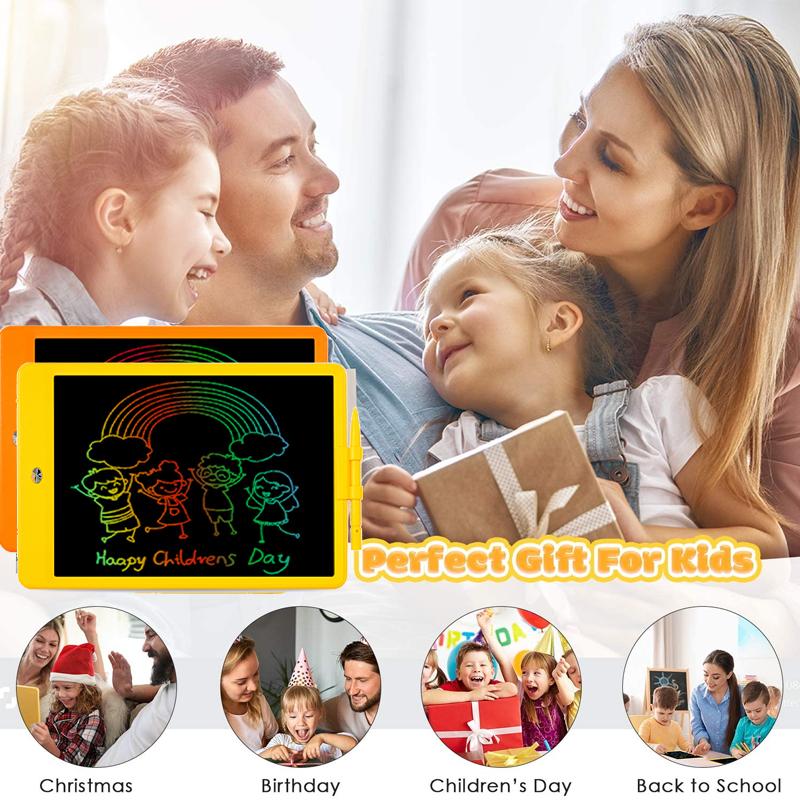 SAFE FOR KIDS: This LCD writing tablet utilizes cutting-edge LCD pressure sensor technology from 2021 and features a vibrant 10-inch colorful LCD display. Its eye-friendly screen improves the drawing experience by eliminating blue light and glare, effectively lowering the risk of eye fatigue during long periods of use. It makes for a fantastic educational gift for young kids.