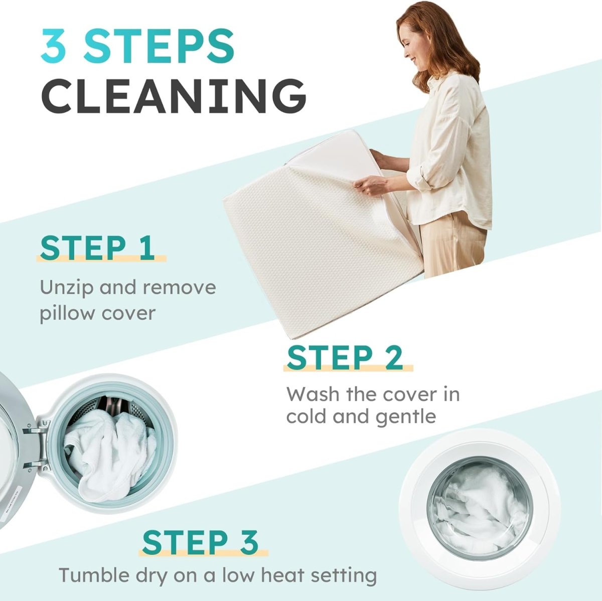 ELEVANA is designed to provide versatile comfort and support for sleep and relaxation. With a premium memory foam core, it adapts to your body and helps relieve pressure while maintaining stability. The 50 × 50 × 26 cm incline design makes it suitable for supporting the back, knees, legs, or neck, whether for reading, watching TV, or resting. A removable, breathable, and hypoallergenic cover ensures hygiene and freshness, while the non-slip base keeps the pillow securely in place. Practical double side pockets allow you to keep essentials close at hand. Certified by CertiPUR-US and Oeko-Tex standards, ELEVANA combines comfort, safety, and durability in one functional pillow.