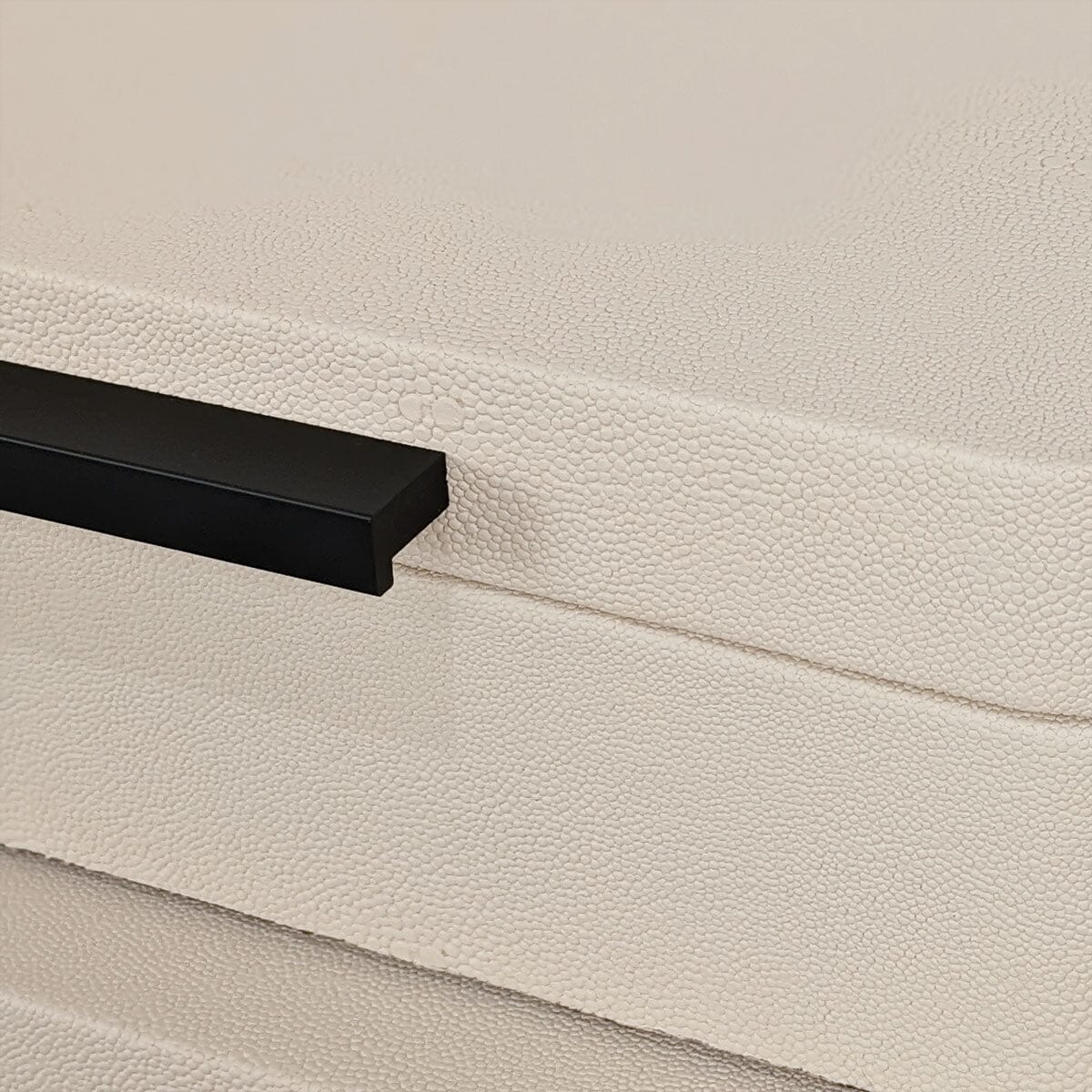 Upgrade your storage solutions with the Eliza Luxury Cream Decorative Jewelry Boxes featuring sleek black handles - Set of 2.