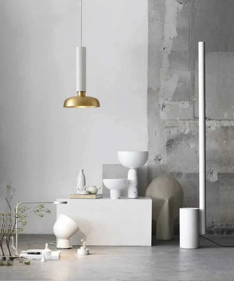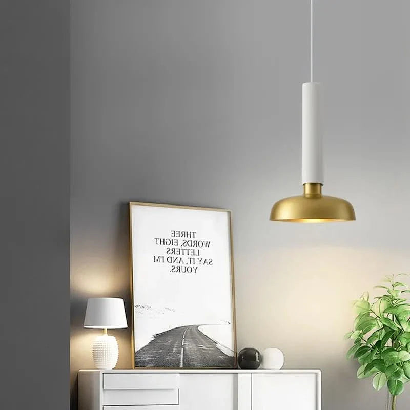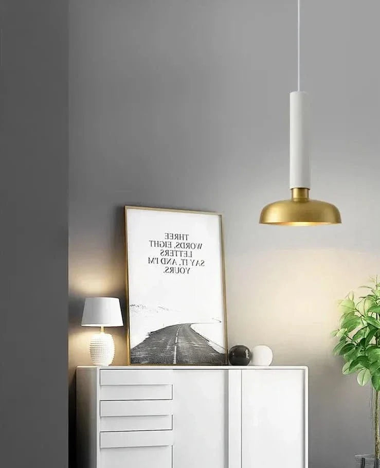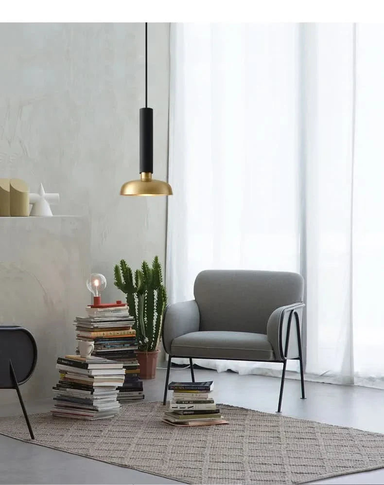 This minimalist brass pendant light harmonizes industrial design with functional utility, making it a superb choice for any contemporary home. Its aesthetic appeal and durability render it an excellent option for both residential and commercial spaces.