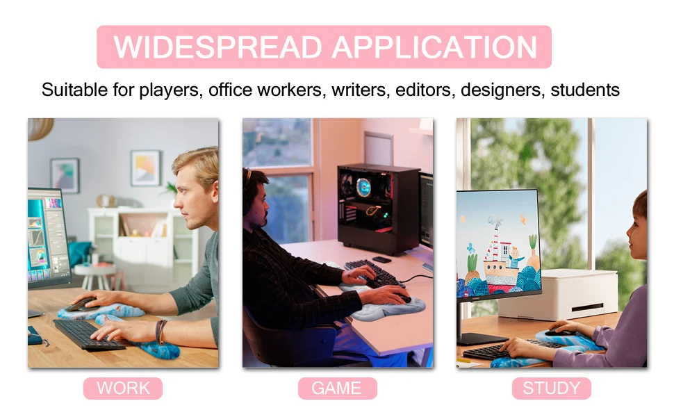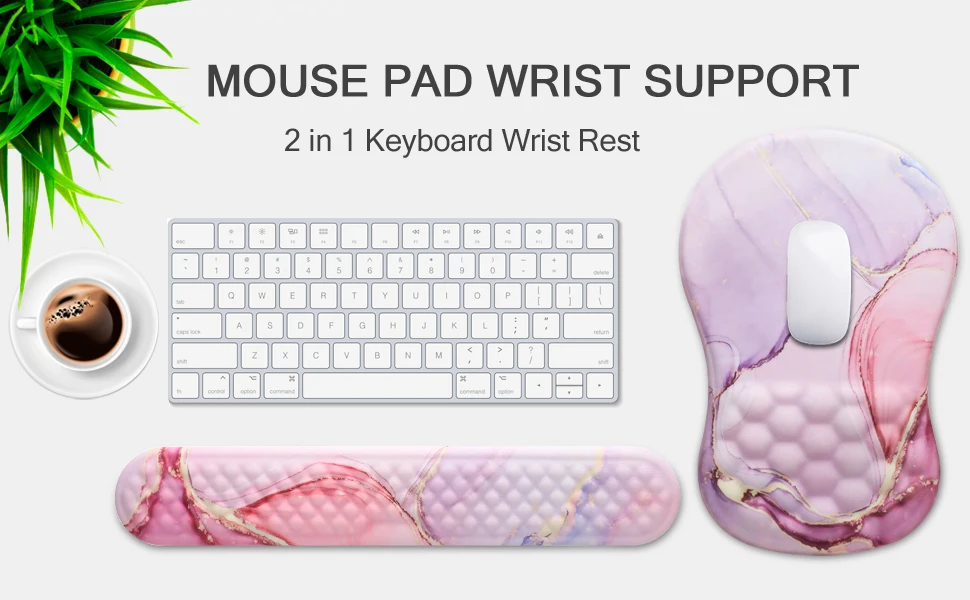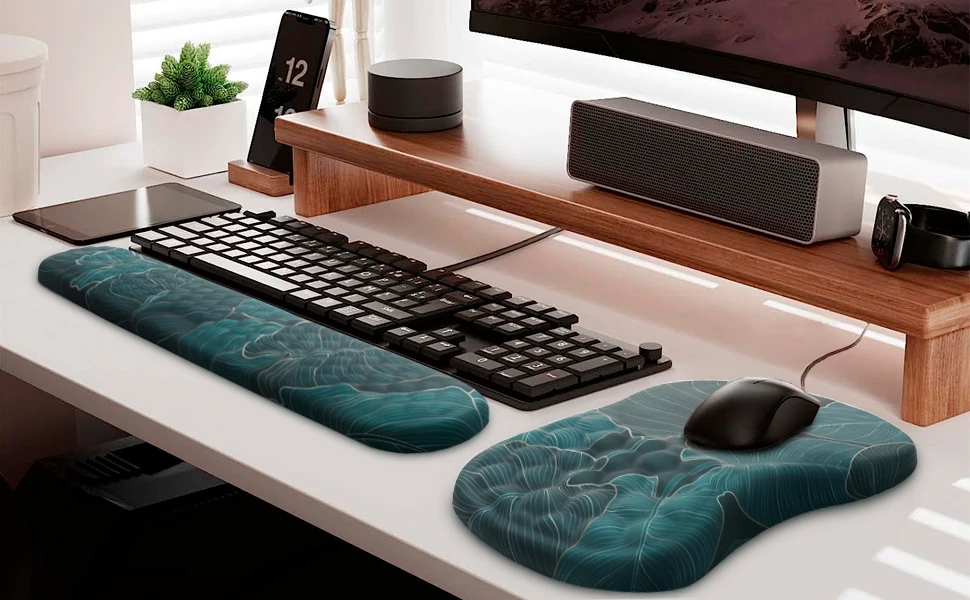 Presenting our innovative 2-in-1 Ergonomic Support designed for your desktop! Bid farewell to discomfort and welcome improved productivity and ease with our specially designed mouse pad wrist support and keyboard wrist rest combination.