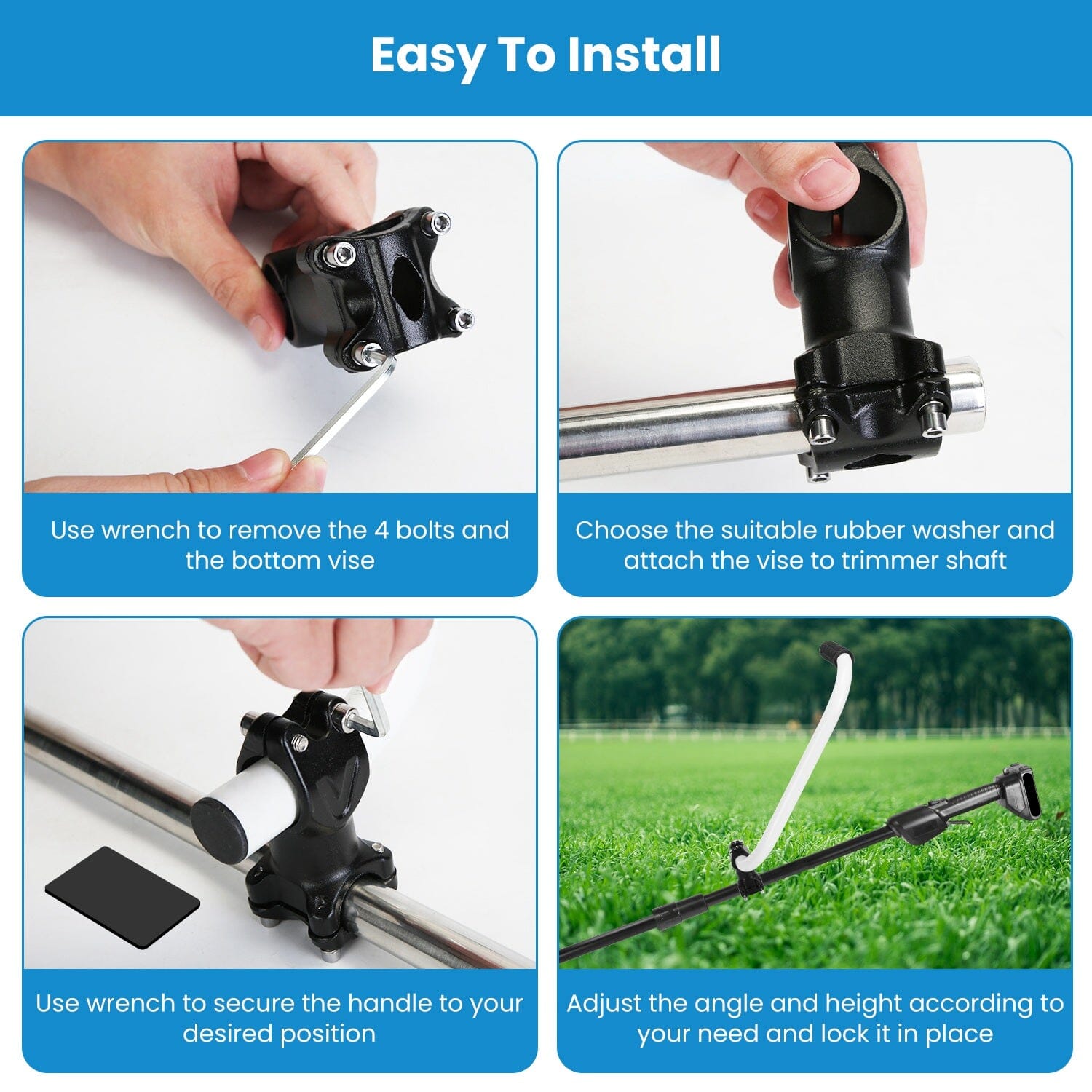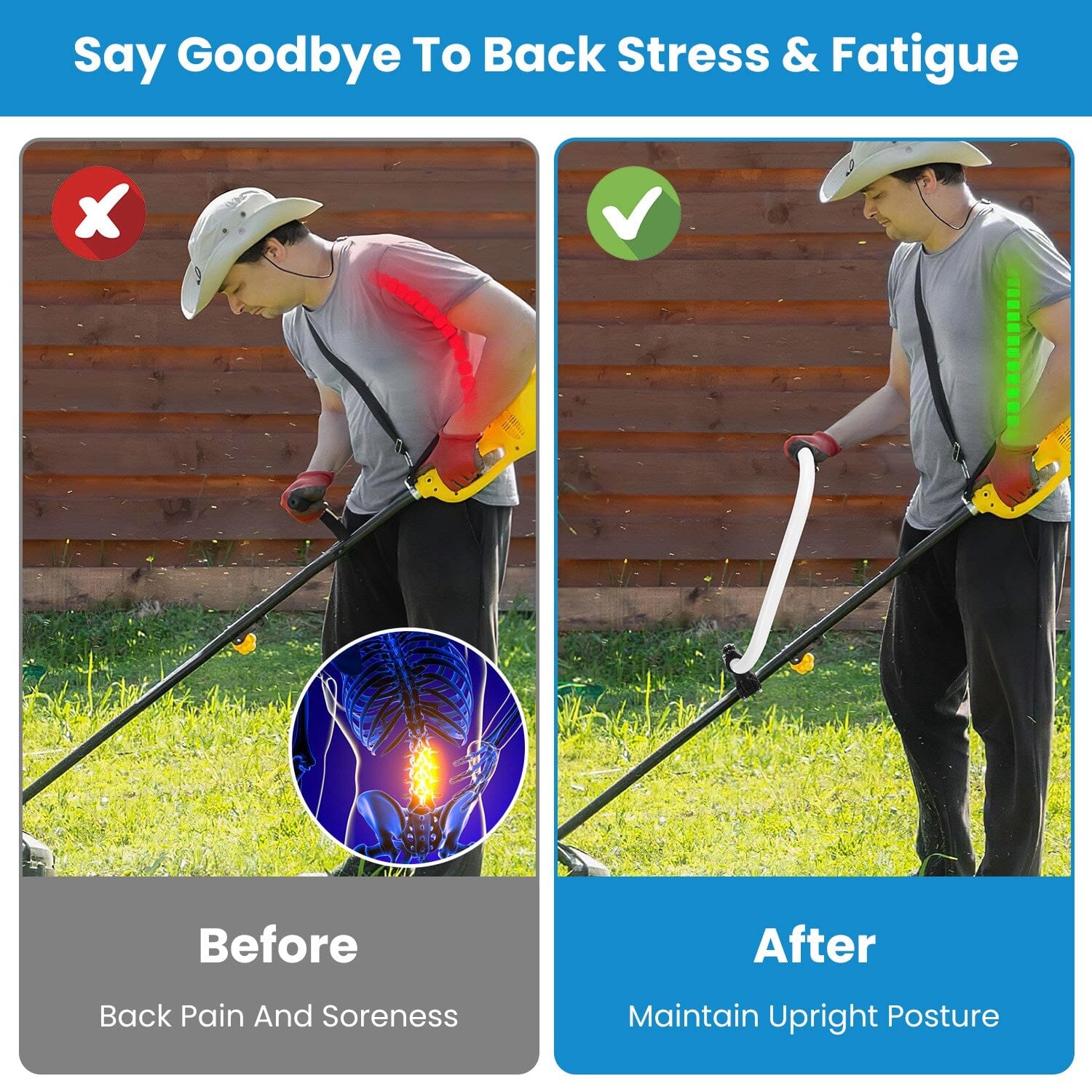 Our ergonomically crafted trimmer handle reduces discomfort and strain in your back, enhancing balance and stability during longer sessions of use. The sturdy nylon material combined with breathable mesh fabric in the shoulder strap offers incredible durability and comfort, while the adjustable length allows for a personalized fit to cater to individual needs. Made from high-quality stainless steel, our extension for the trimmer handle is designed to endure everyday use without warping, rusting, or cracking. Just attach the clamp to the trimmer pole, utilize the wrench for angle or height modifications, and secure it firmly. Ideal for heavy-duty trimmers, lighter models, and various trimmer types, it is perfect for mowing lawns, tending to gardens, or managing farms.