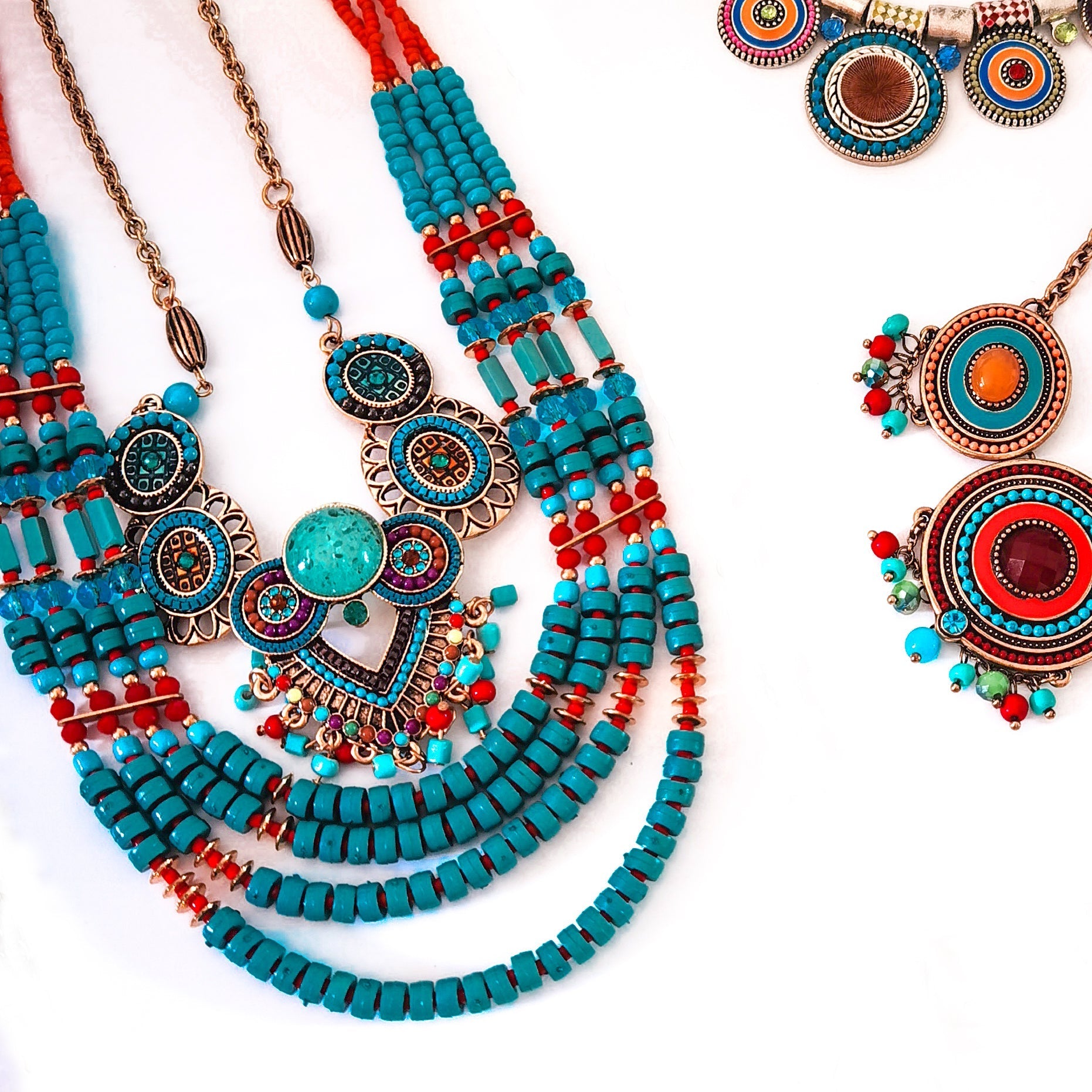 Tibetan-inspired ethnic hair crown accessory featuring bohemian teal green layered pearl drops
