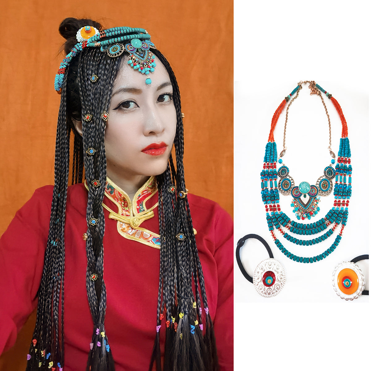 Skorter | Ethical Tibetan hair accessory tiara headwear bohemian blue-green multilayer pearl pendant headwear