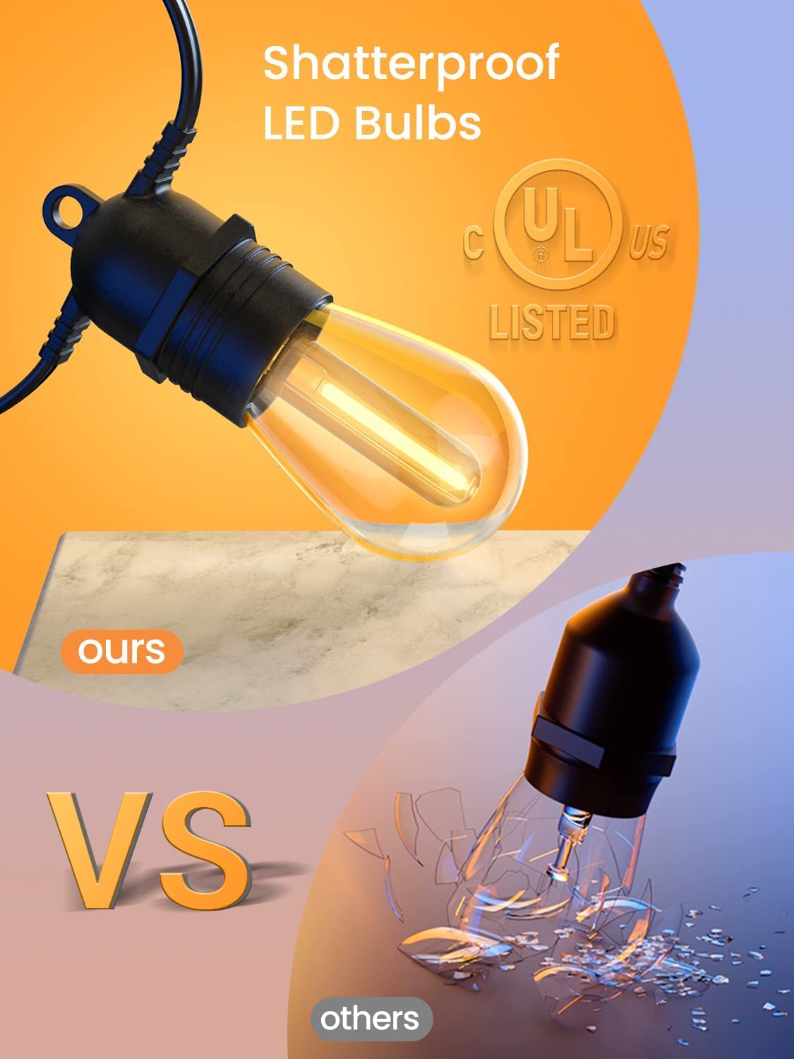 - The shatterproof string lights made from impact-resistant plastic remain intact even if fallen