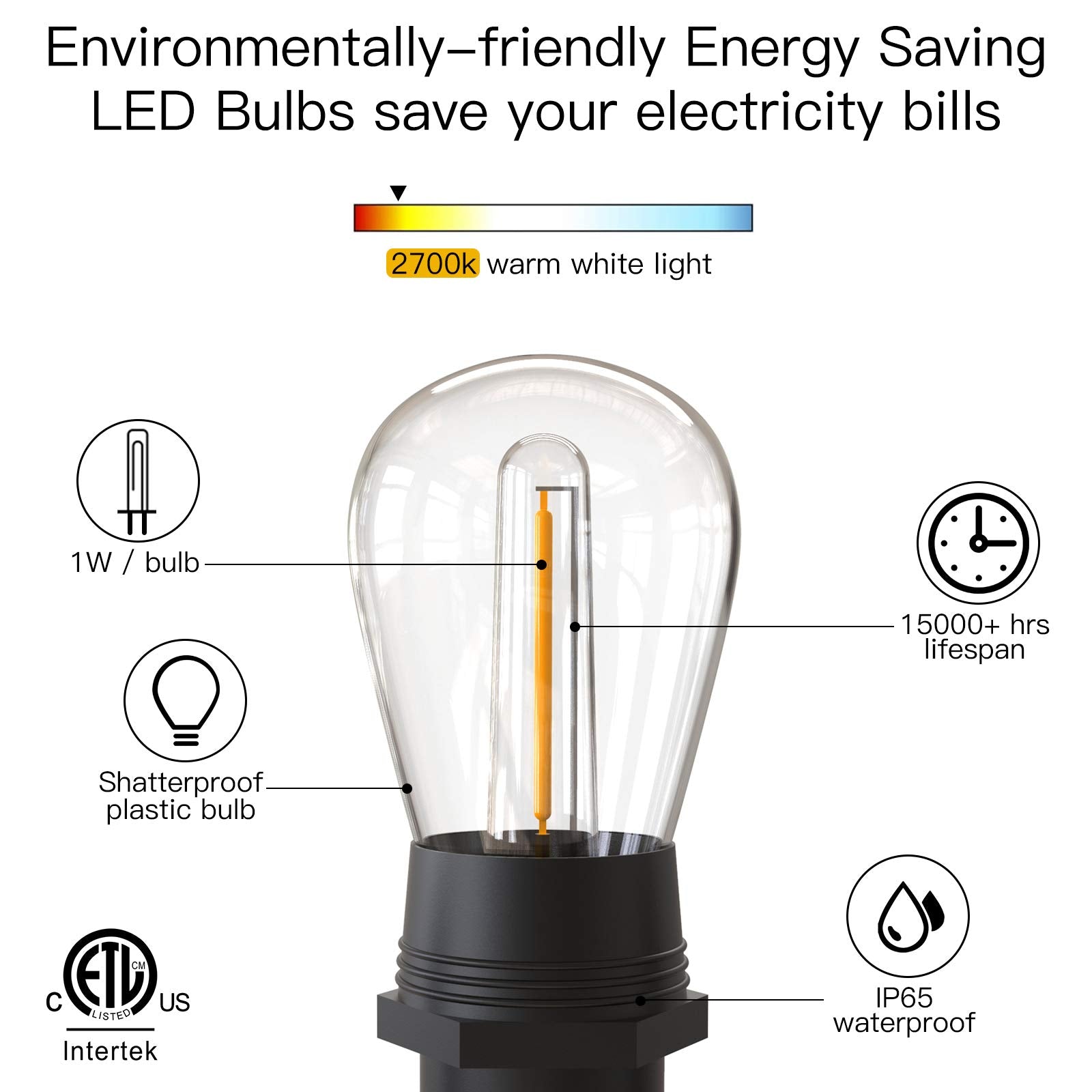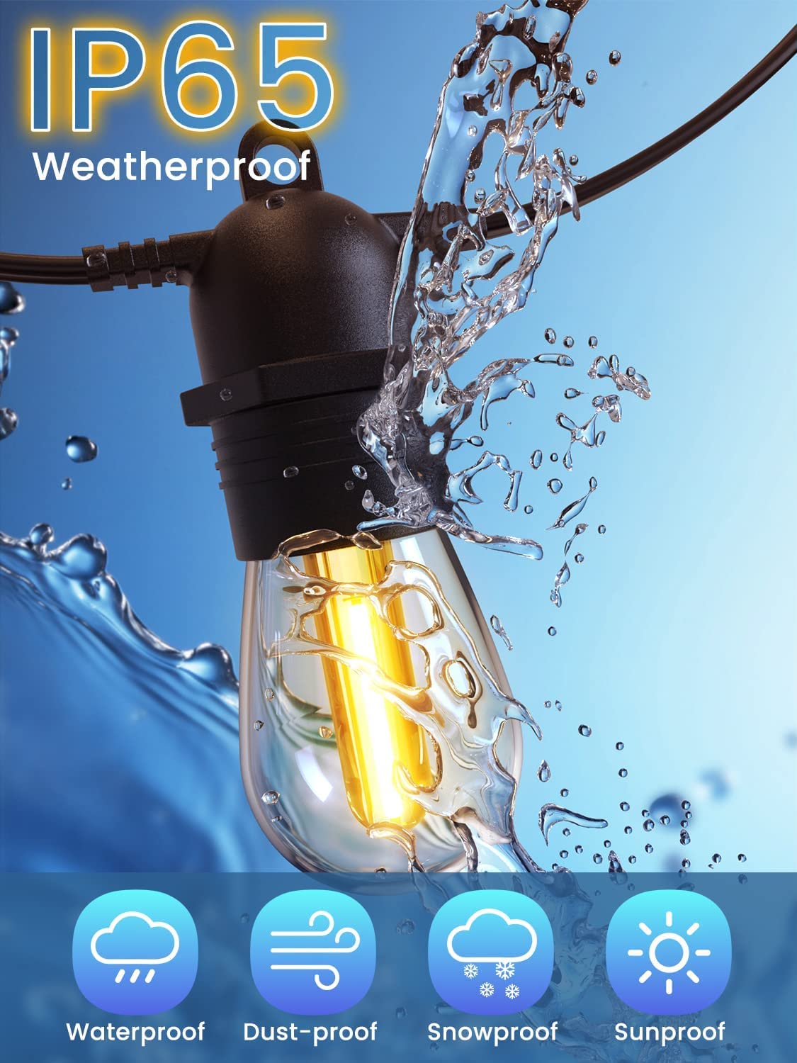 - Sturdy, commercial-grade IP65 weatherproof bistro lights designed for all-year outdoor usage