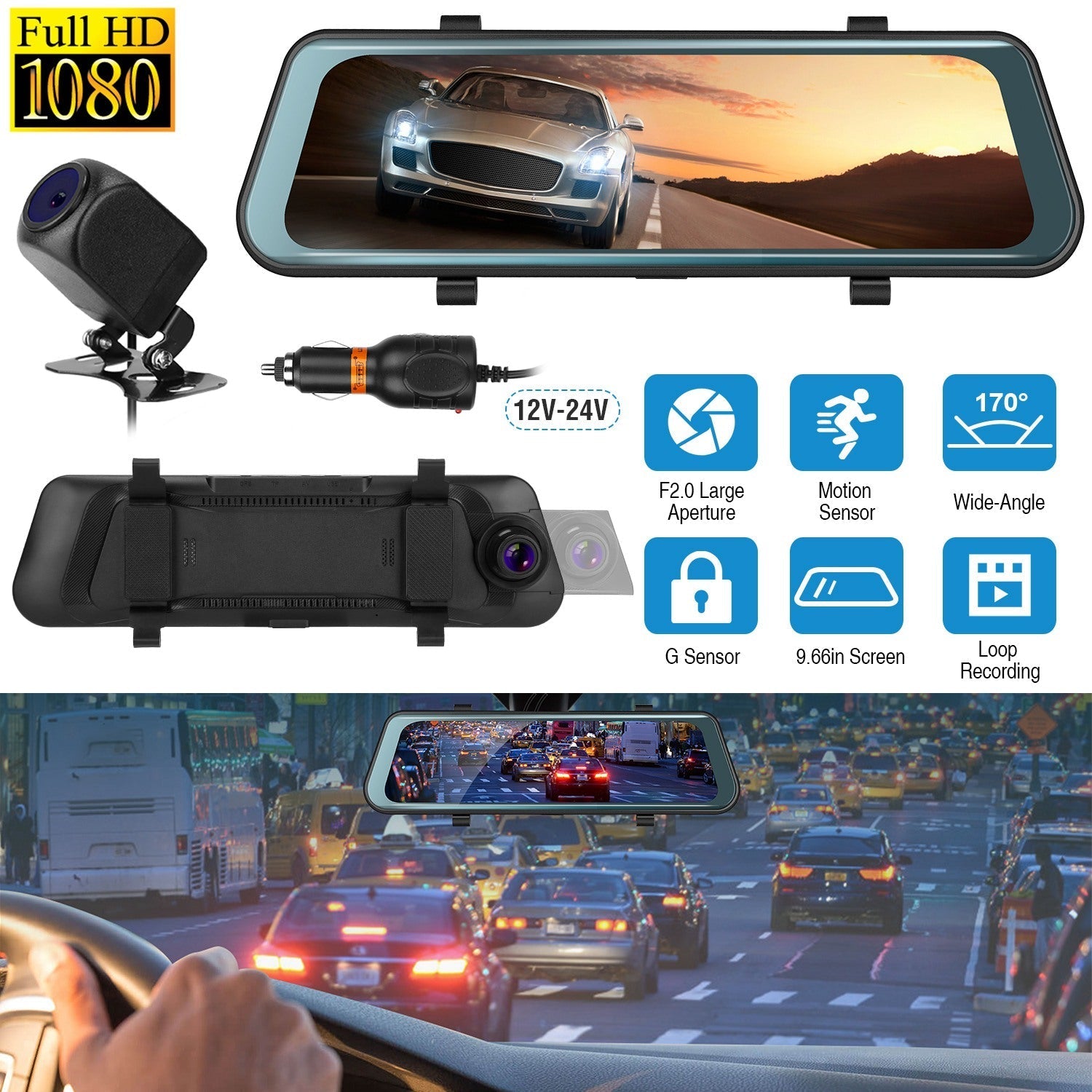 Are you finding it difficult to keep a clear perspective of your surroundings when driving alone? Worried about colliding with objects or losing your direction while backing up your vehicle? It’s imperative to be cognizant of your surroundings in case unexpected situations arise. With the FHD1080P dual-camera system, 170° wide-angle front view, top-notch night vision, and HDR features, you can eradicate blind spots, enjoy vivid colors, and see driving details with remarkable clarity. Parking lines will guide you when reversing, making parking safer. The integrated G-sensor supports a 32G MMC card for loop recording, allowing crucial video evidence to be secured during incidents, monitored parking, and protected against being overwritten. This system gives you the vital proof you may need. The 9.66" HD display can showcase images from both front and rear cameras simultaneously. By installing it in your vehicle, it will remain securely in place and won’t obstruct the panoramic view.