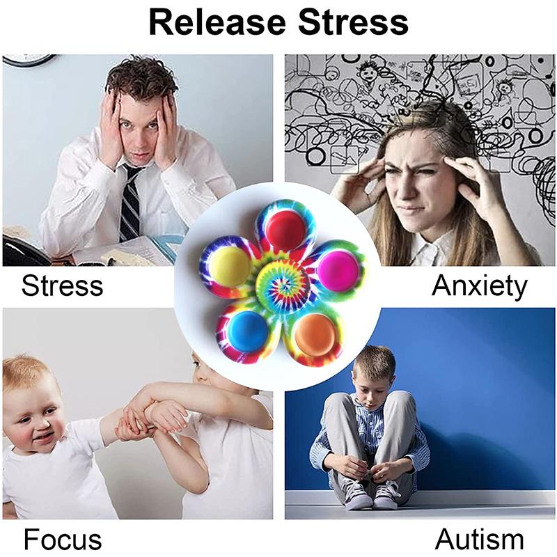【Popper Fidget Devices Support Stress Relief and Anxiety Management】: Engaging with the soft buttons of the pop spinner provides a pleasurable experience that boosts tactile engagement. These toys are wonderful for relieving stress, calming anxiety, lifting your spirits, and defeating boredom. The popping fidget toy is especially beneficial for those with ADHD, autism, anxiety, and similar issues.