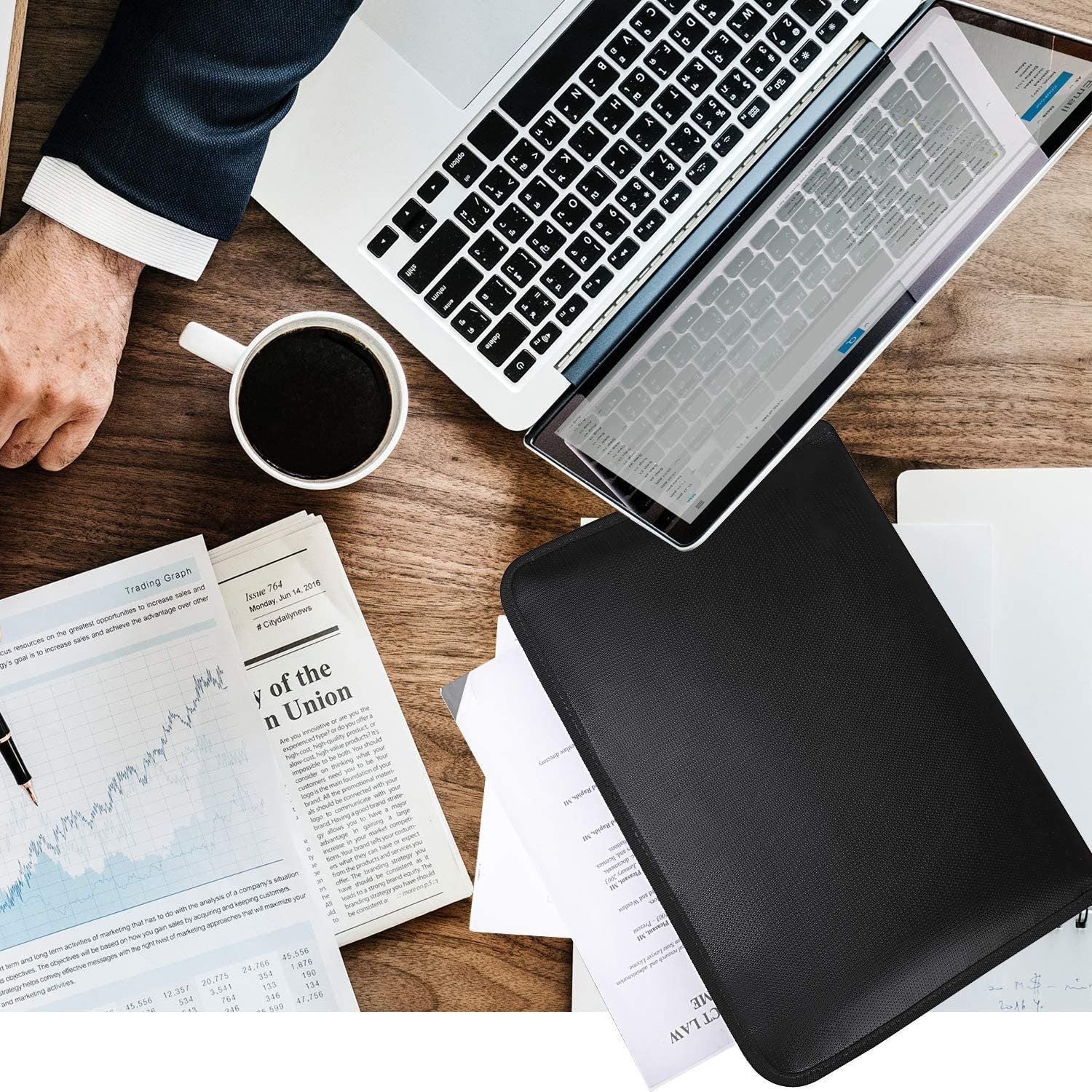 Fire-Resistant Document Organizer, Water-Repellent Money and Document Pouch in A4 Dimensions with 13 Pockets, Zipper Closure, Safe Non-Toxic Silicone Coating, Portable File Storage Solution.