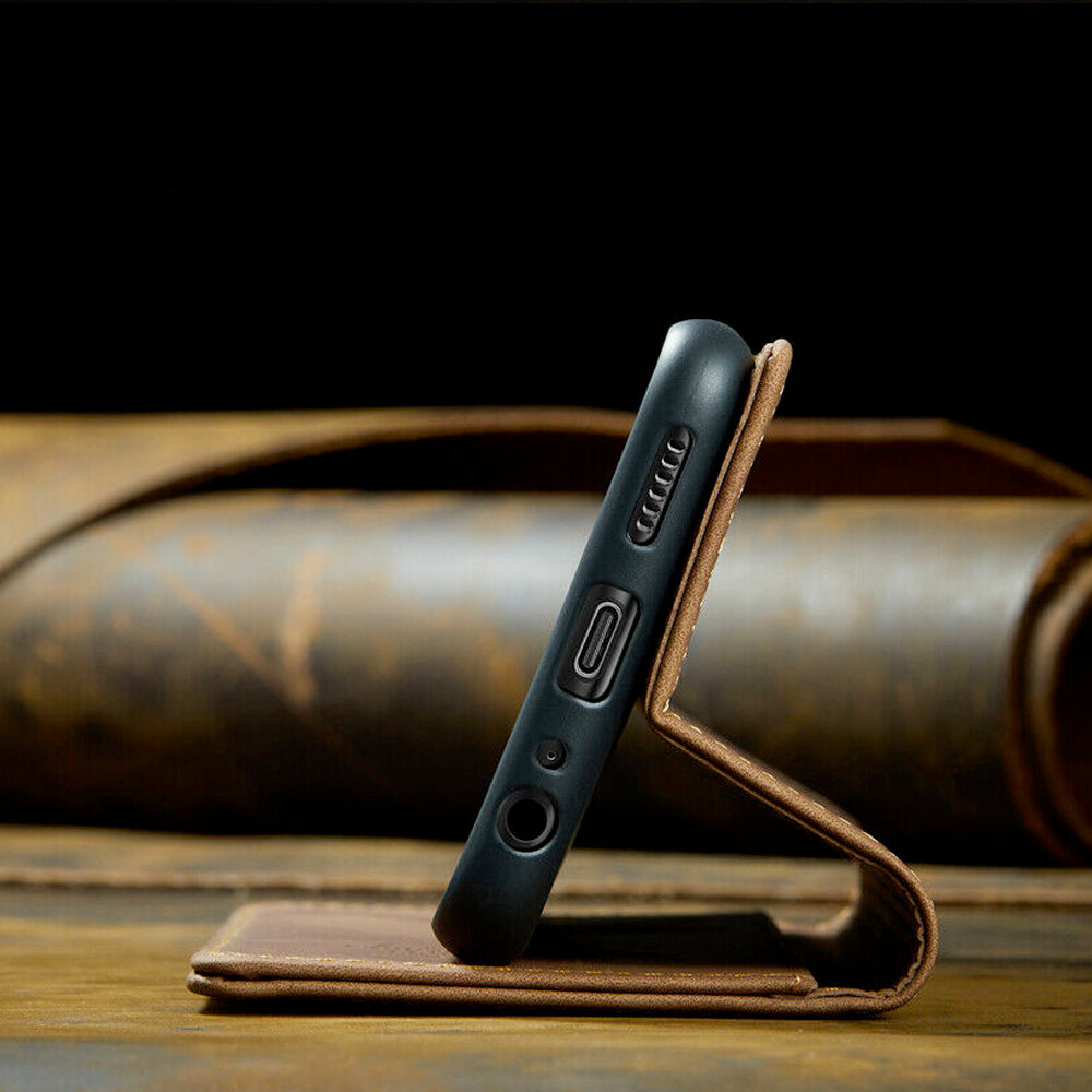 Premium Skorter flip cover case designed for Samsung A13 A33 A53 5G. It includes compartments for your cards, a cash pocket, and a magnetic flip book stand design.