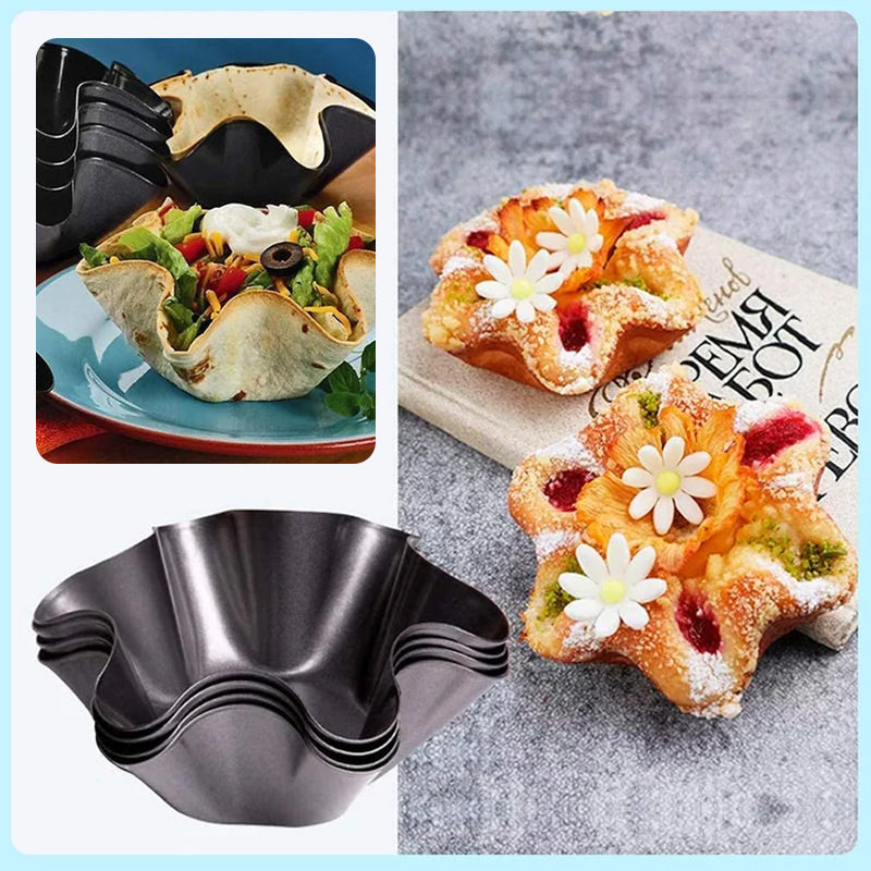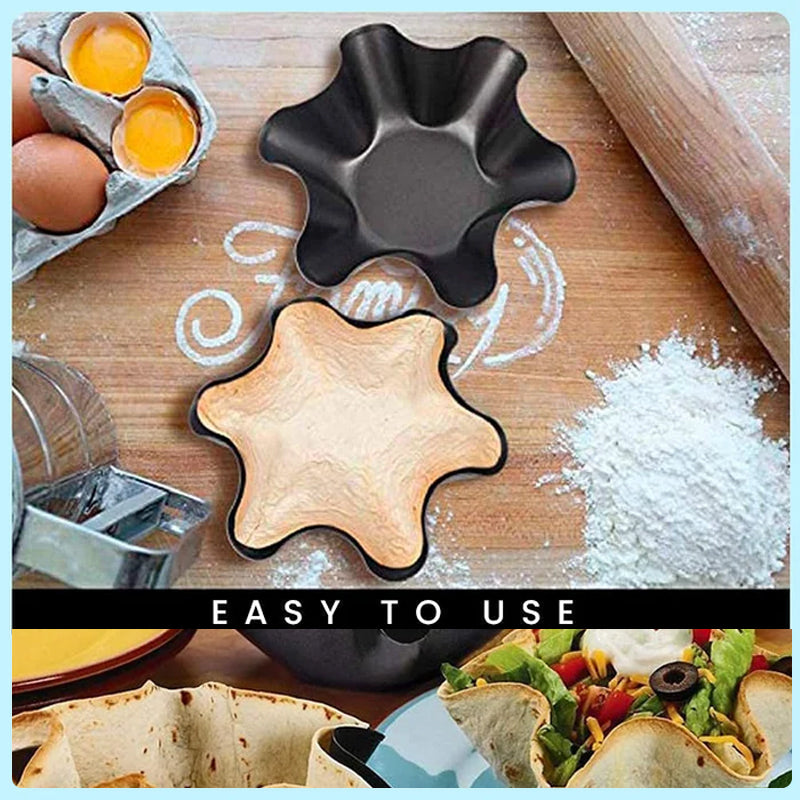 Easy to Use Just place a tortilla over the pan, press it into the mold, and bake for 8-10 minutes, fill it once cooled down, and savor.