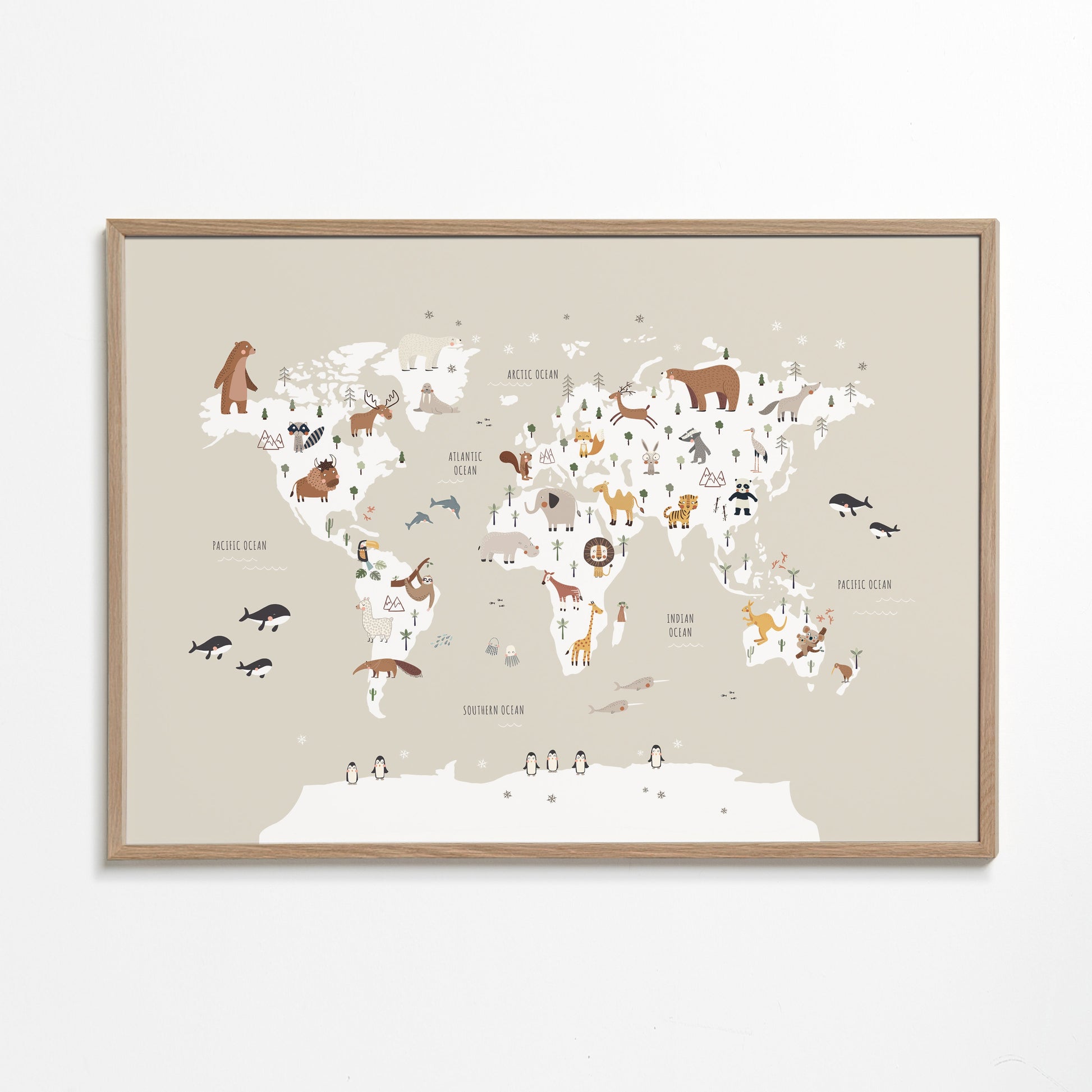 Children's Poster Animal Map Beige