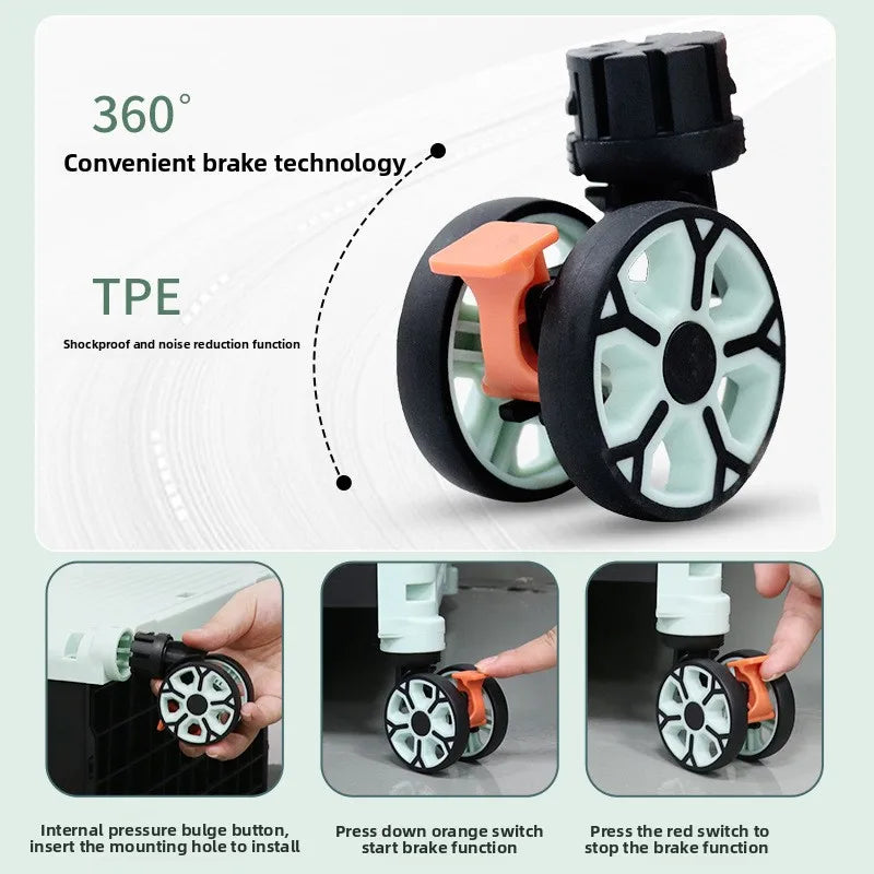 This folding shopping trolley is designed for daily household or supermarket use. Its silent wheels roll smoothly, reducing noise while carrying groceries or household items. Lightweight and portable, it folds flat for compact storage when not in use. Available in multiple colours, it combines practicality with everyday convenience.