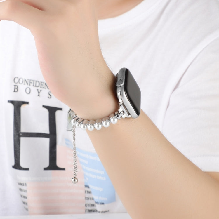 Skorter | For Apple Watch 42mm Pearl bracelet metal watch band (Silver)