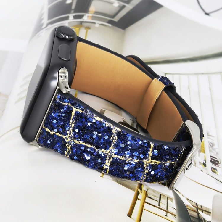 Skorter | For Apple Watch 5 & 4 44mm / 3 & 2 & 1 42mm Glitter Sequin Leather Watch Band (Blue Gold)