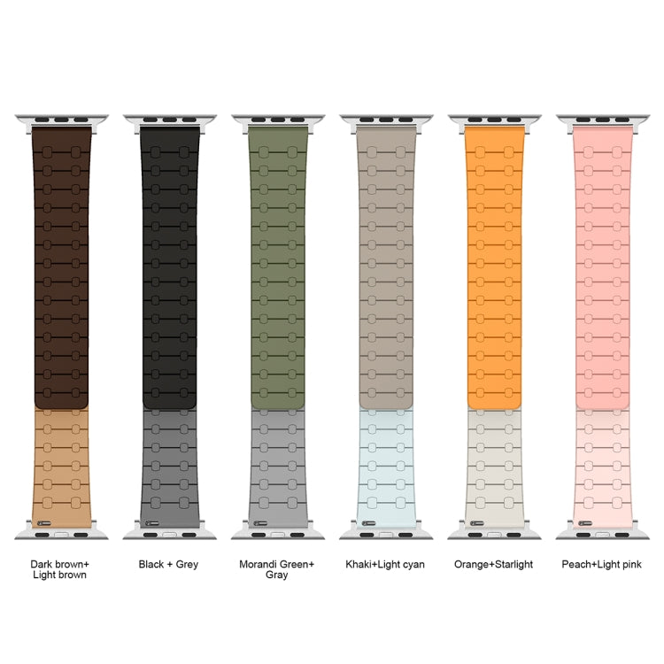 Skorter | For Apple Watch Series 9 45mm Two Colored Loop Magnetic Silicone Watch Band (Orange + Starlight)