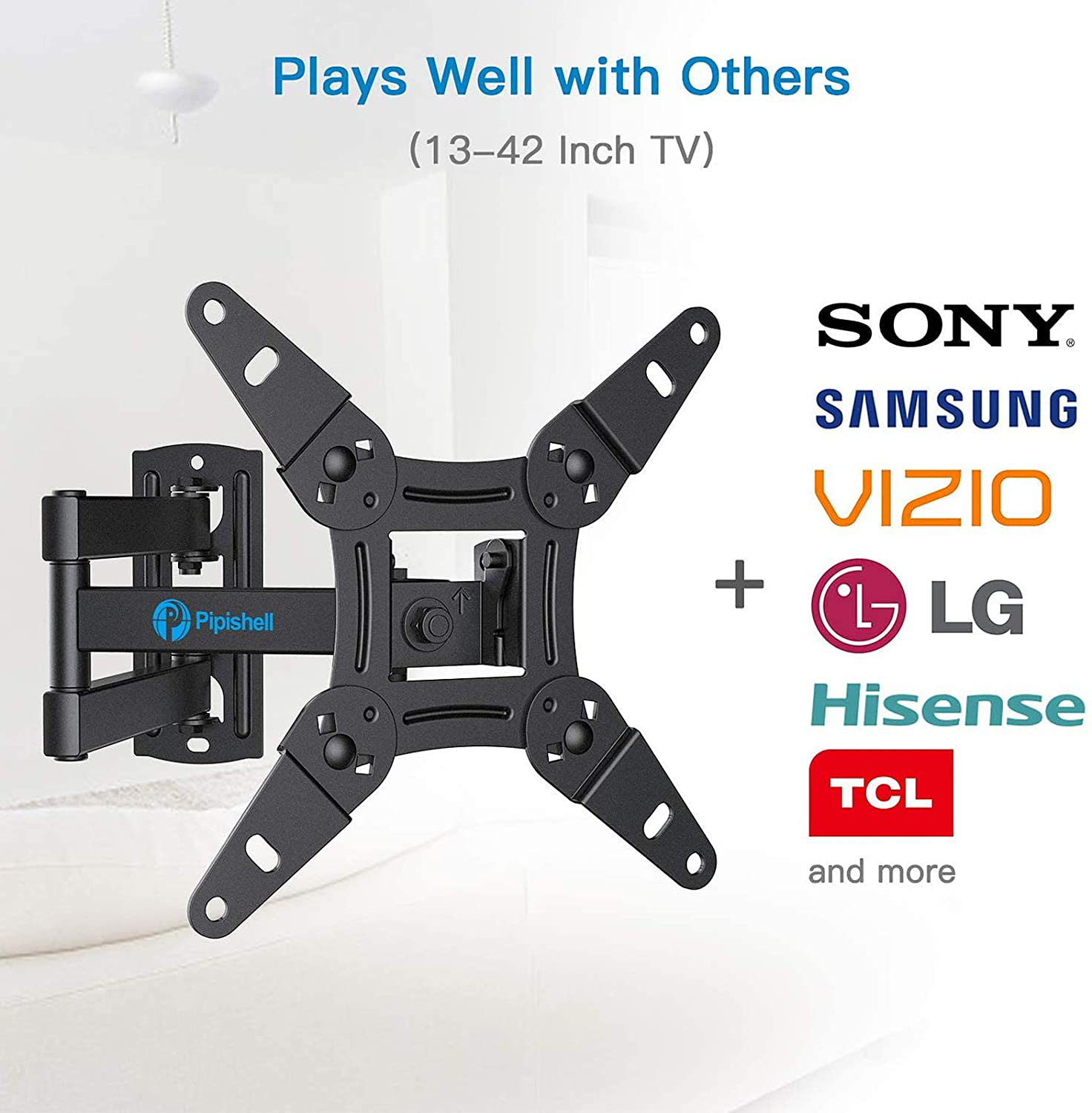 Adjustable TV Monitor Wall Mount Bracket with Swivel and Rotate Arms for a Variety of 13-42 Inch LED LCD Flat and Curved Screen TVs & Monitors, Maximum VESA 200x200mm with a weight support of up to 44 lbs by Pipishell