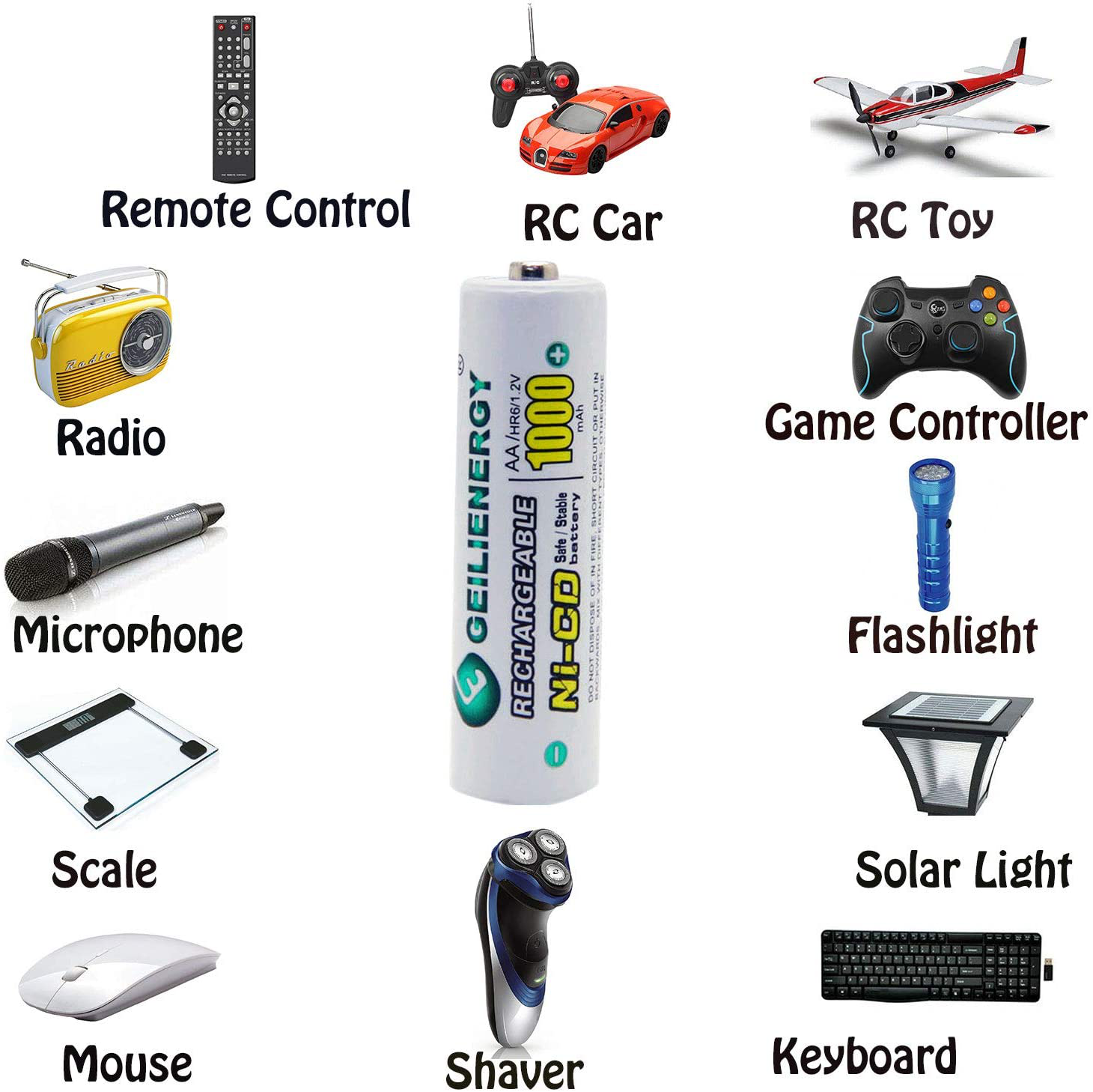 GEILIENERGY Solar Light AA Ni-CD 1000mAh Rechargeable Batteries, AA Rechargeable Batteries for Solar Lights (Pack of 12)