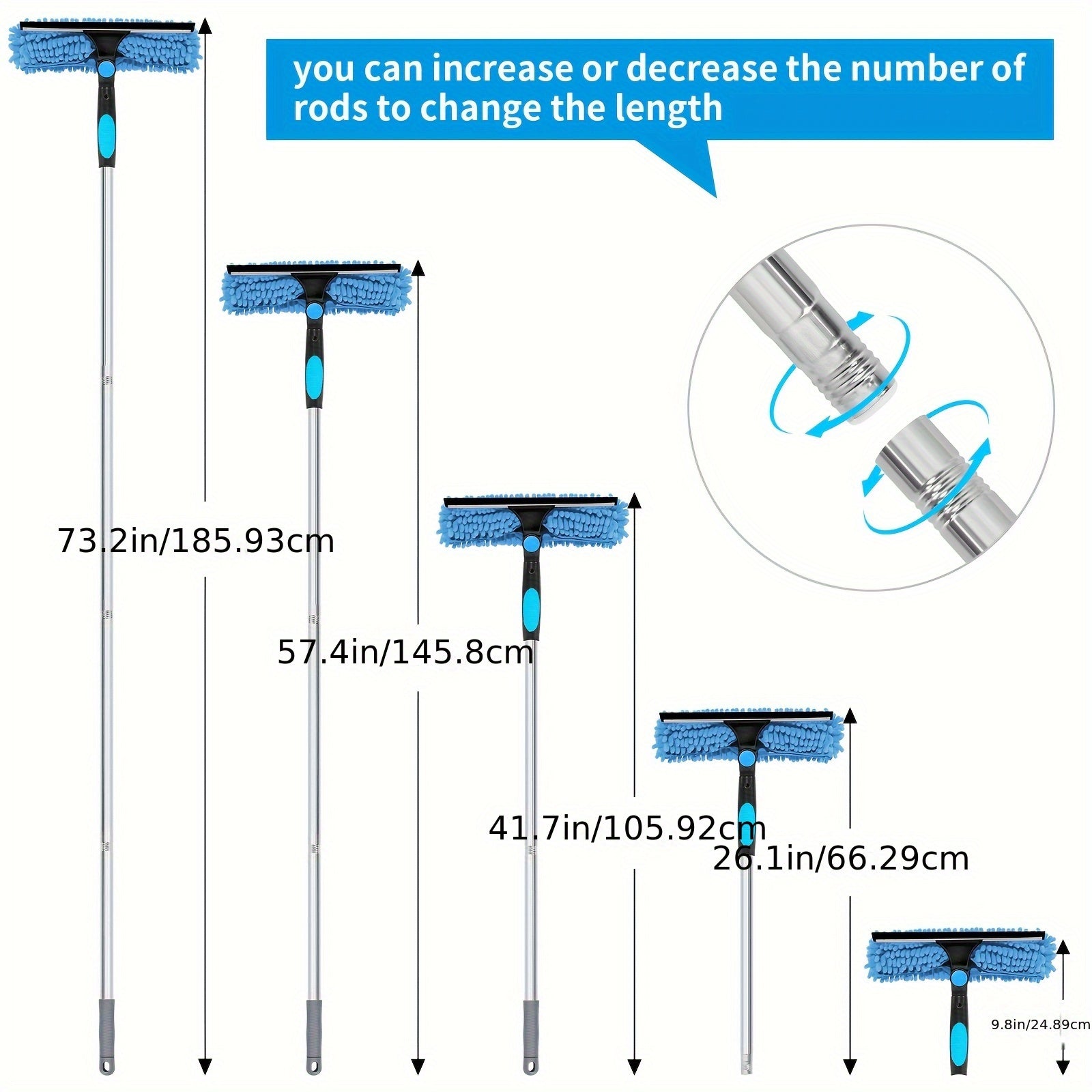 ✔ Telescopic Handle (up to 182 cm) – Safely access high windows without the need for ladders or stools.