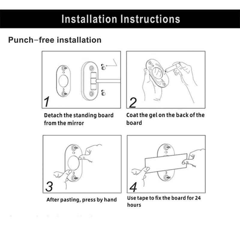 Note: The battery is not removable - the mirror must be installed near a power outlet for the USB charging cable to plug in).